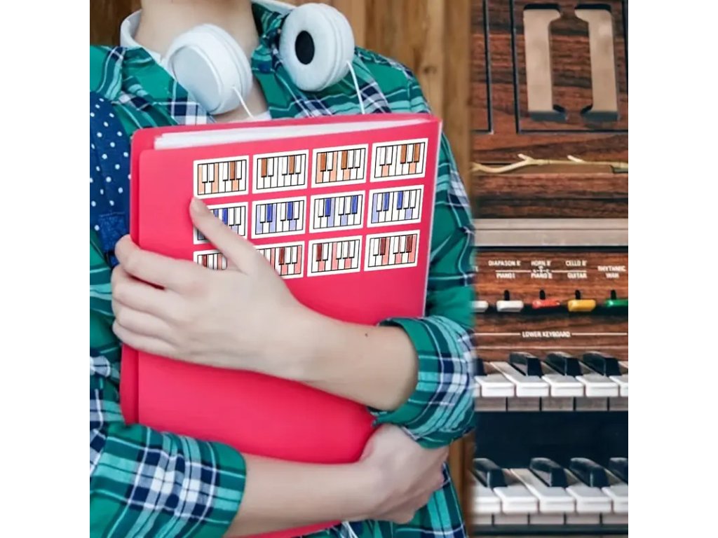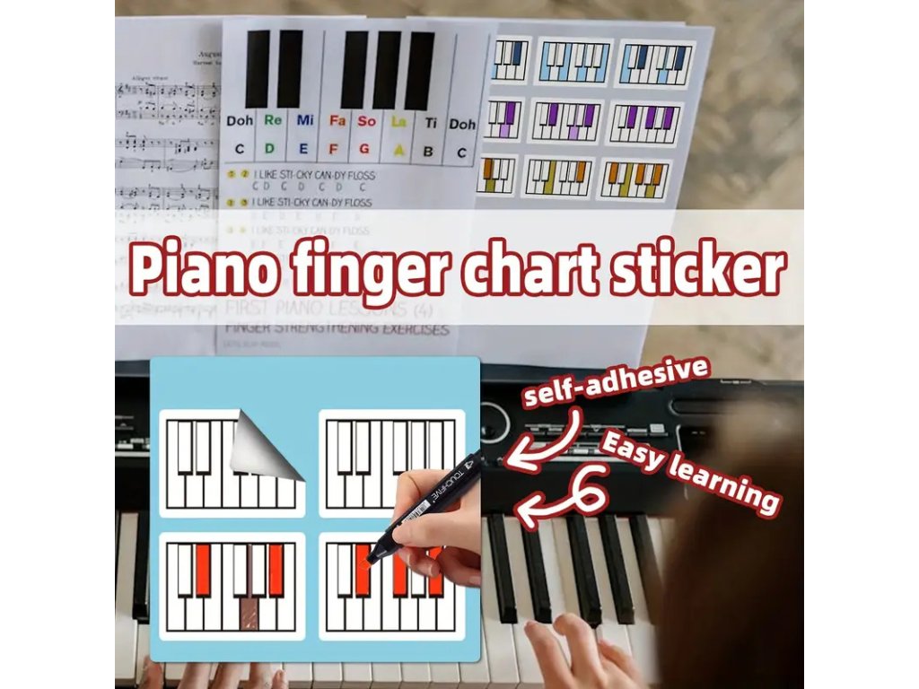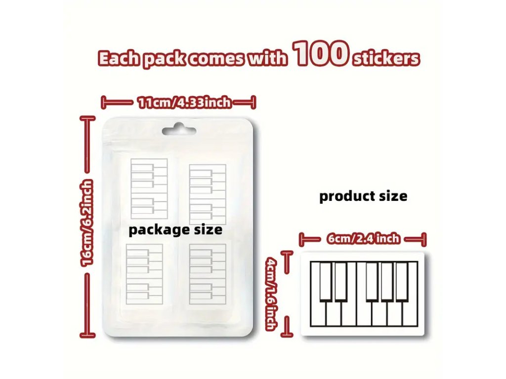 Sada štítkov s klaviatúrou, prenosné a samolepiace - ideálne pre nácvik hudobnej teórie a žiakov - začiatočníkov.