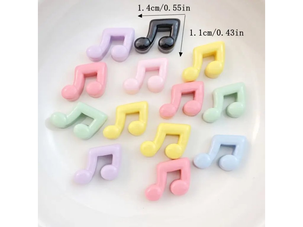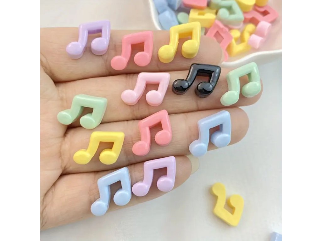 Komplet obsahuje 20 ks malých nôt zo živice pre scrapbooking a ďalšie tvorenie.