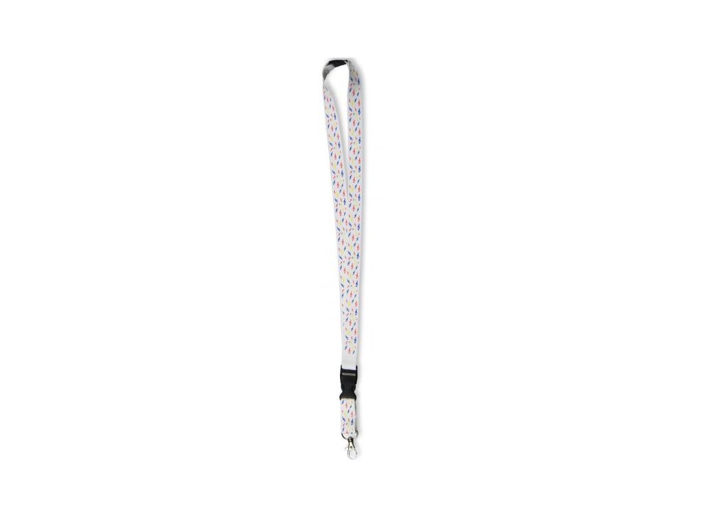Šnúrka na krk s karabínou as potlačou farebných husľových kľúčov je vhodná na zavesenie kľúčov alebo čipov. Šnúrka je dlhá 50 cm a široká 2,2 cm.