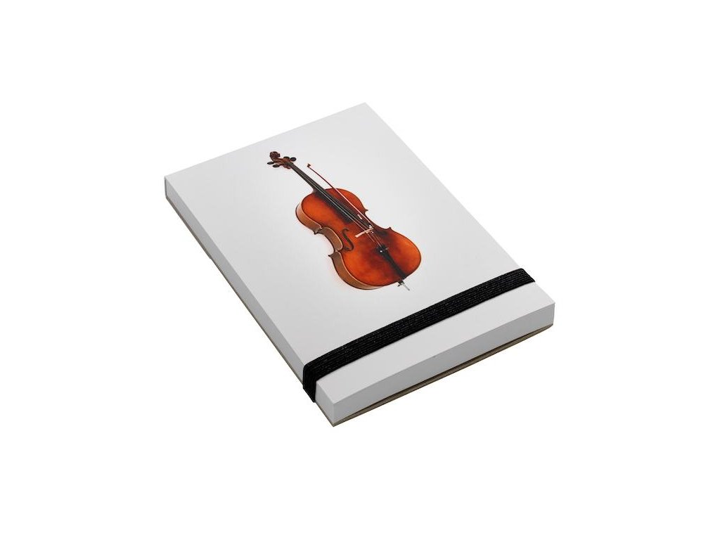 Zápisník s motívom violončela, nelinajkovaný. Obsahuje 90 listov, rozmery 7,3x10,4cm.