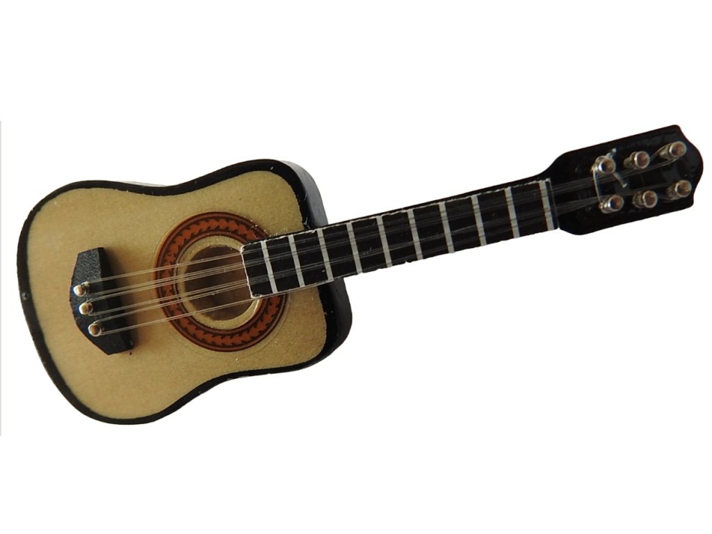 Drevená brošňa v tvare akustickej gitary. V zadnej časti je spínací špendlík s poistkou proti odopnutiu. Dĺžka gitary 7,3 x 2,8 cm. Farba: hnedá, čierna, zlatá Materiál: drevo, kov, plast Bez darčekovej krabičky.