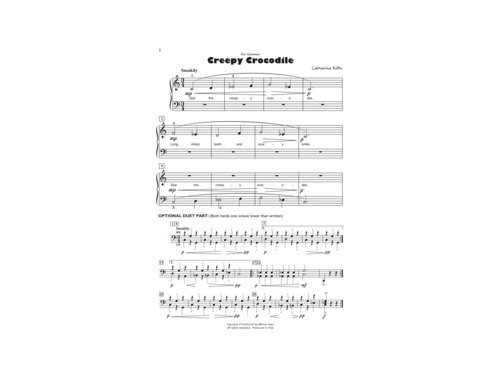 Creepy Crocodile / Strašidelný krokodíl. Jednoduchá skladbička pre začiatočníkov s voliteľným sprievodom pre učiteľov.