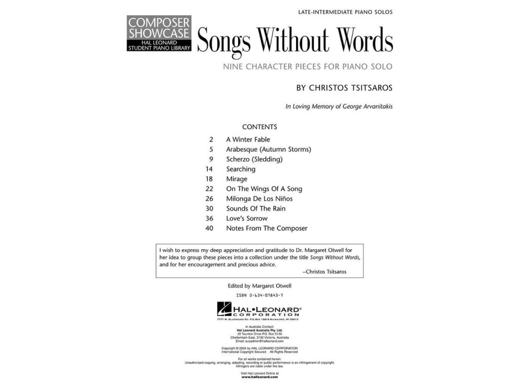 Tieto klavírne sóla je možné vykonávať na rôznych úrovniach pokročilosti, pretože ich emocionálny obsah ďaleko presahuje ich technické nároky. Obsahuje: Arabesque (Jesenné búrky) · Smútok lásky · Milonga De Los Ninos (Tanečná pieseň detí) · Mirage · Na krídlach piesne · Scherzo (Sánkovanie) · Hľadanie · Zvuky dažďa · Zimná bájka.