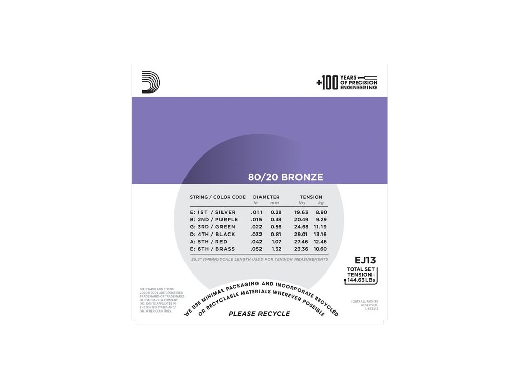 Struny z radu 80/20 Bronze Wound určené pre akustické nástroje využívajú originálnu mosadznú zliatinu, s ktorou John D'Addario začal pracovať už v 30. rokoch minulého storočia. Sú veľmi obľúbené pre svoj veľmi jasný, pevný a silný tón, ktorý oceníte nielen v štúdiu či ako gitaristi vyznávajúci vintage tón a staršie hudobné žánre. Jadro je tu tradične Oceľové šesťhranné pre dlhú životnosť, excelentnú intonáciu a bezchybný tón.