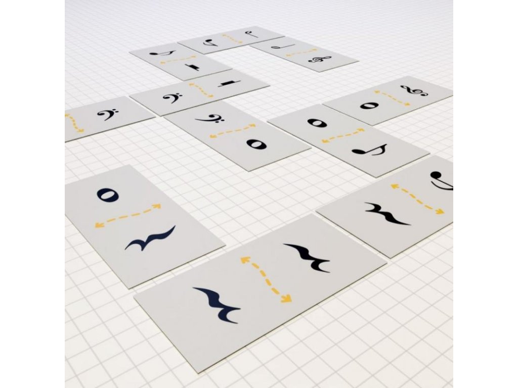 Hráte sa stranou kariet, na ktoré sú hudobné príklady. Zamiešajte hracie karty a dajte každému hráčovi dve. Zvyšok predstavuje doberací balíček. Jednu kartu z neho položte na stred hracej plochy. Hráči sa pravidelne striedajú v ťahoch.