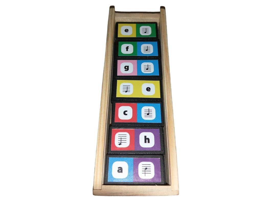 Domino notové 2 v 1 je obľúbená hra pre dvoch alebo štyroch hráčov, u ktorých si osvojí alebo precvičí noty. Vyžaduje logiku, stratégiu a trochu šťastia. Popri klasickom variante hry sa skrýva v krabičke aj originálna verzia "notová". Cieľom hry je umiestniť všetky „kamene“ na hraciu plochu tak, aby sa „nota“ na konci radu zhodovala s notou alebo názvom noty na priloženom kamene. Nejedná sa v princípe len o prikladaní rovnakého k rovnakému. To, že hráč môže napr. priložiť k obrázku noty C nielen obrázok noty C ale aj samotné písmeno C dáva hre vzdelávací a "precvičovací" presah. Pojítkem medzi obrázkom noty a písmenom je farebné označenie, ktoré ocenia najmä úplní začiatočníci.