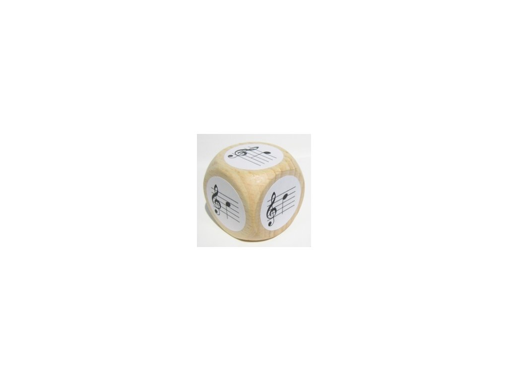 Drevená kocka s notami v husľovom kľúči c2, d2, e2, f2, g2, a2. Veľkosť 25 mm.