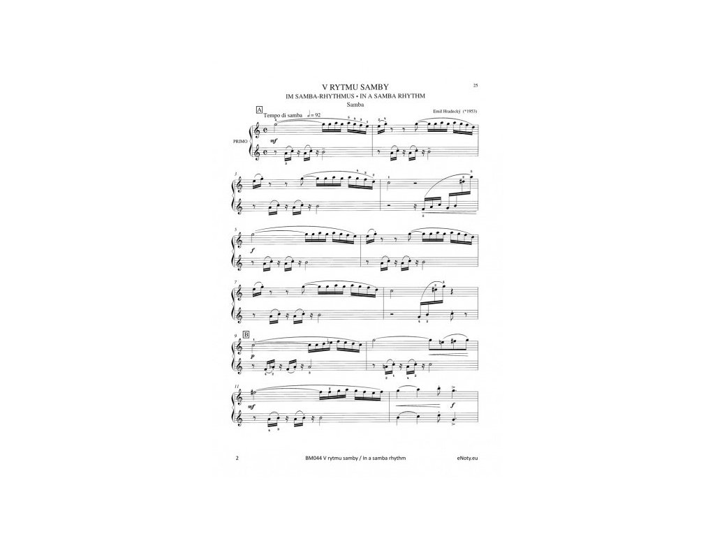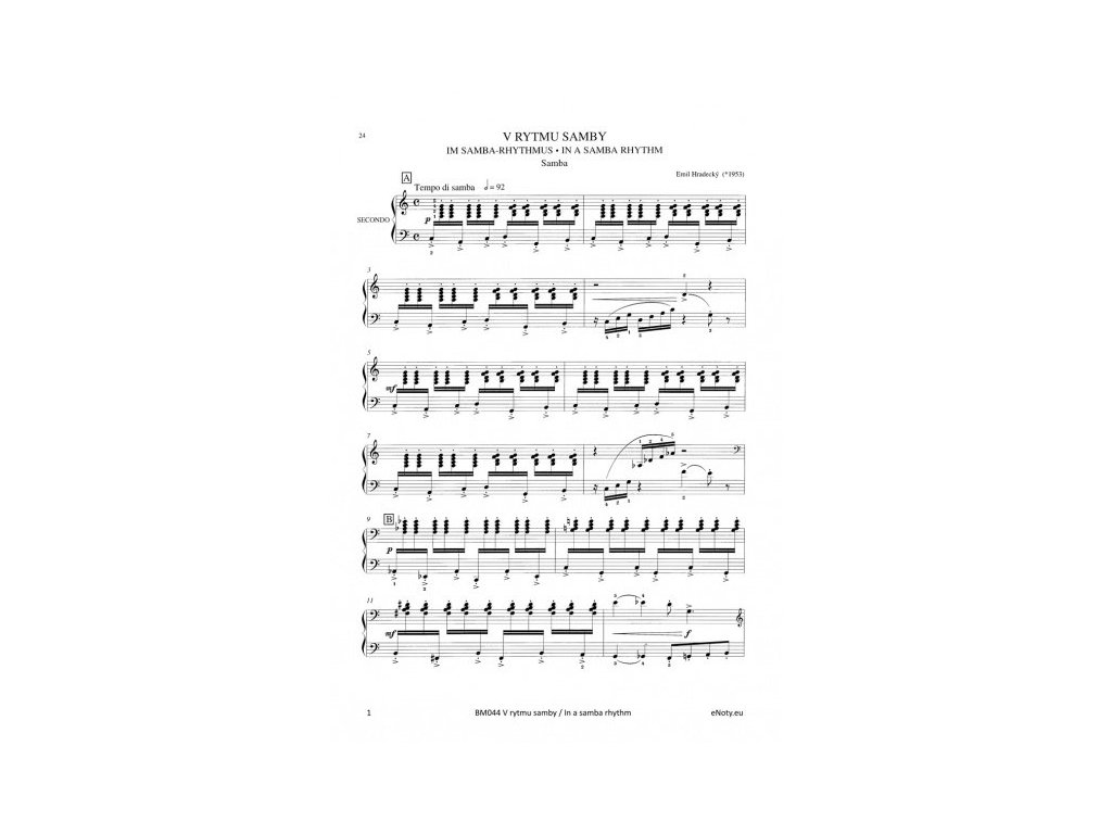 Emil Hradecký (*1953) je jedným z významných českých skladateľov, ktorí sa vo svojej tvorbe často inšpirujú tanečnou hudbou a jazzom. Tento titul prináša skladbu V rytme samby v štvorručnej úprave pre klavír. Obtiažnosť 5+