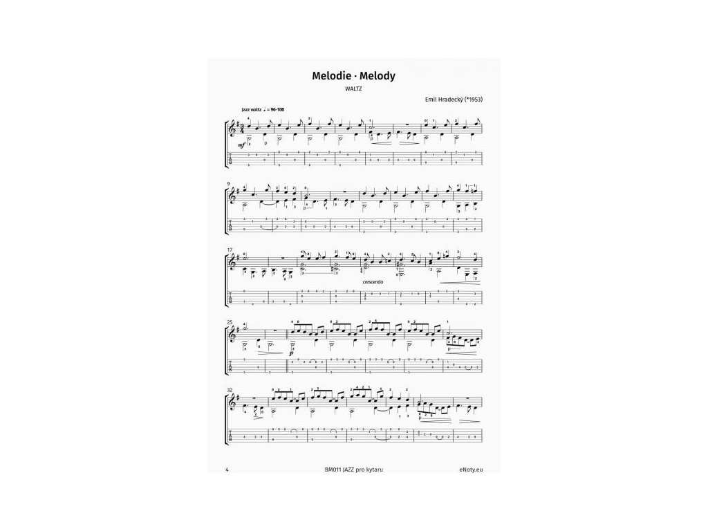 Titul Jazz pre gitaru Vám ponúka sedem originálnych jazzovo ladených skladieb, ktoré Emil Hradecký napísal pre klasickú gitaru. Všetky skladby sú v úprave gitarová linka a tabulatúra. V zošite nájdete odkaz na stiahnutie demo nahrávok pre Vašu predstavu, ako skladby znie.