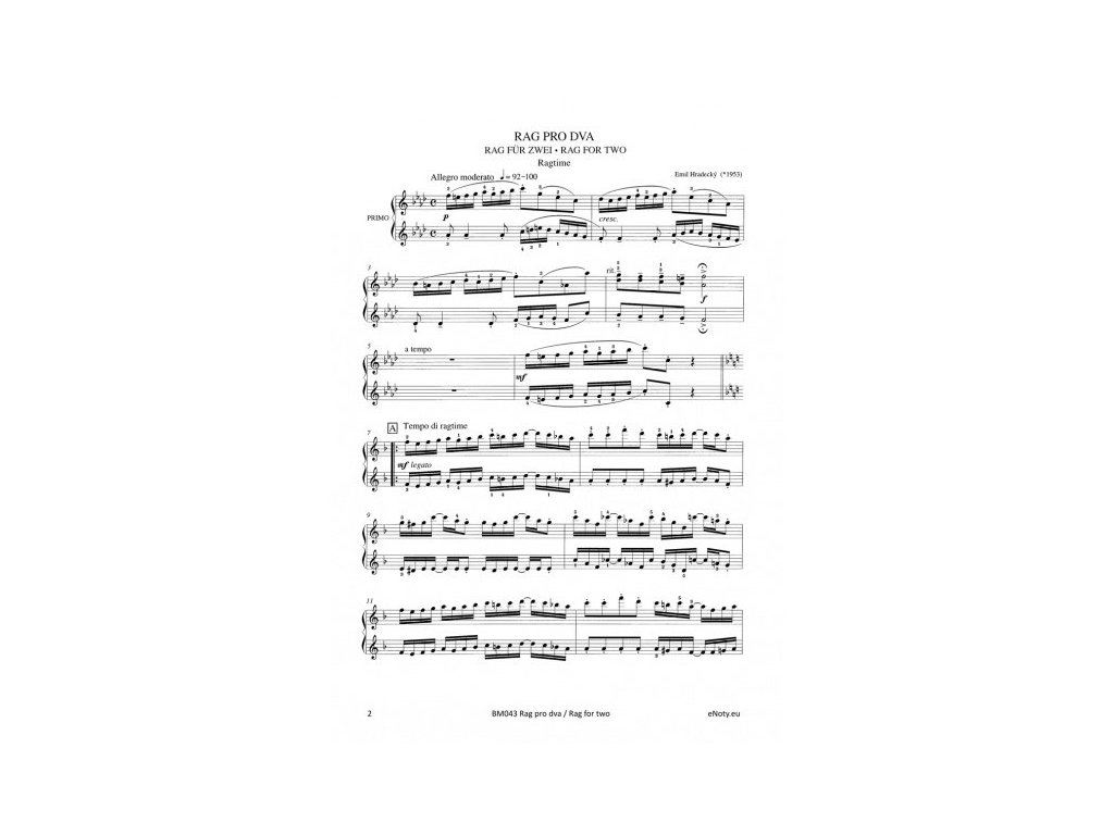 Na priloženom CD sú nahrané štyri štvorručné skladby Emila Hradeckého Rag pre dvoch, Z kopca do kopca, V rytme samby a Skús to so mnou. Každá skladba je tu nahratá niekoľkokrát - v plnej verzii pre Vašu predstavu ako skladba znie, po tej samostatnej nahrávky oboch partií primo aj secondo v troch rôznych tempoch pre jednoduchší nácvik skladby. Len pomalé štvorručné blues Skús to so mnou je na CD nahrané iba v plnej verzii a samostatné primo a secondo.