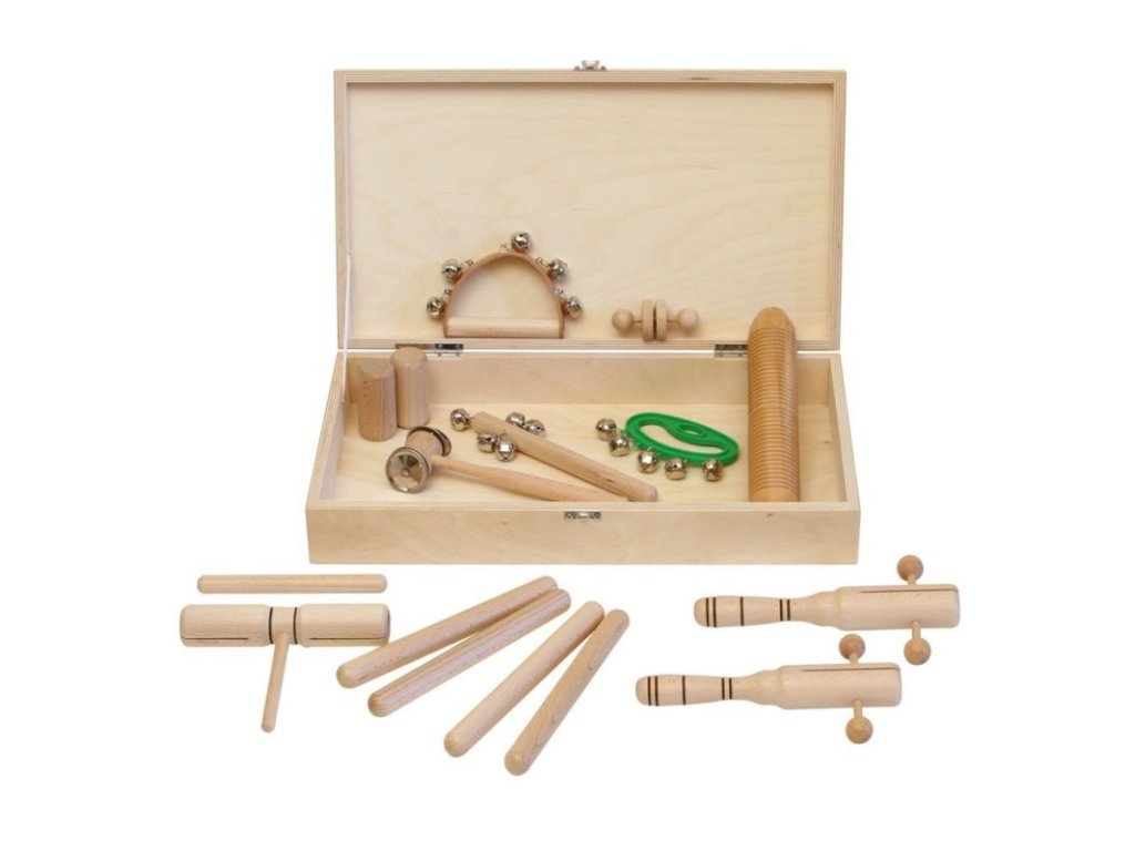Súprava veľmi kvalitných perkusných nástrojov, vyrobených prevažne z bukového dreva.