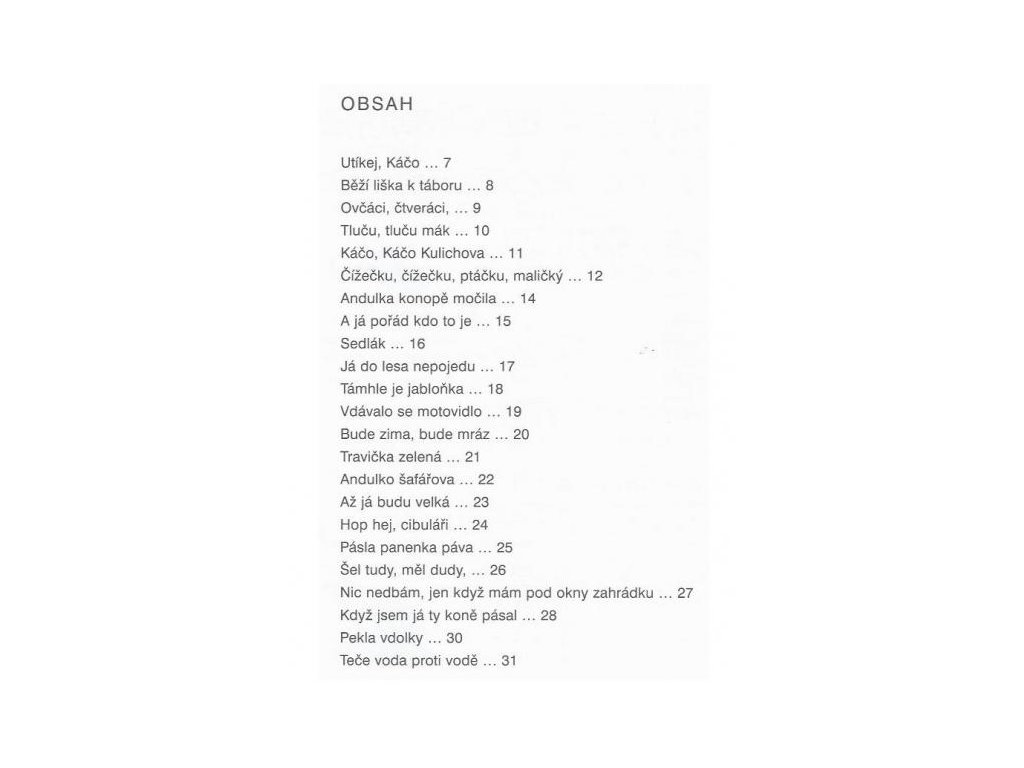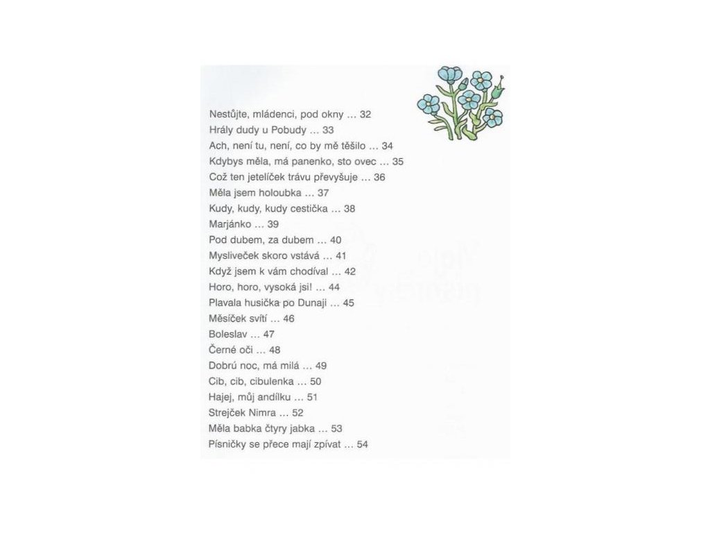 Obľúbená knižka ponúka výber textov viac ako štyroch desiatok známych ľudových pesničiek. Obsahuje notovú prílohu. Ilustrácie Heleny Zmatlíkovej plné poézie i humoru. Pre malých i dospelých čitateľov.