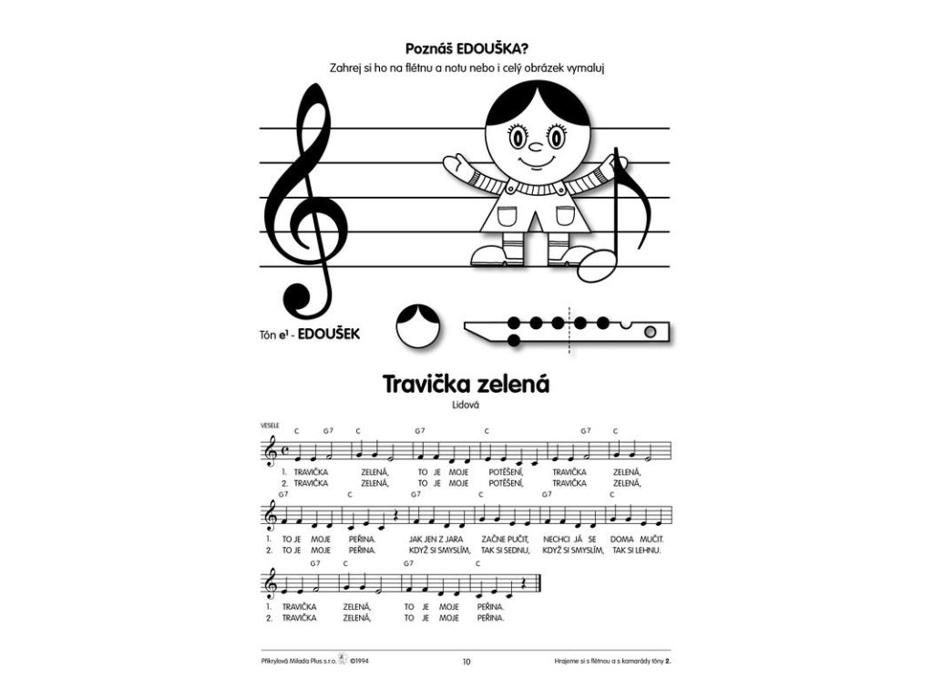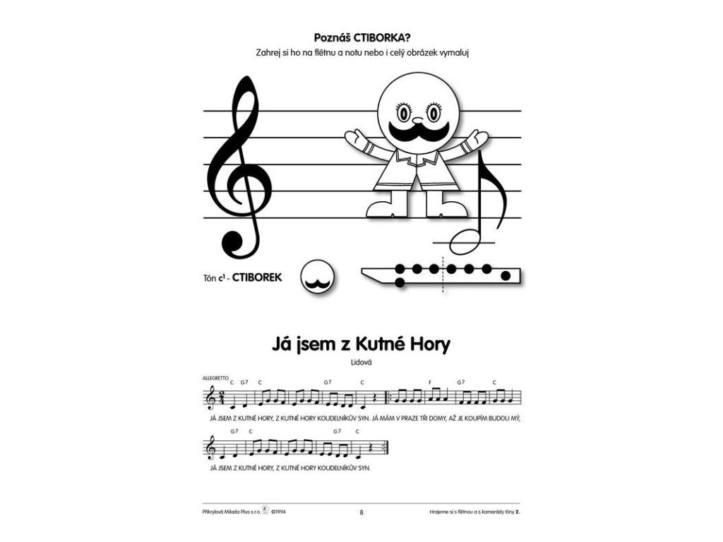 Druhý diel spevníka Hráme sa s flautou as kamarátmi tónmi vznikol na žiadosť pedagógov o rozšírení výberu pesničiek pre hru detí na flautu. Pesničky v tomto spěvníku nie sú radené podľa obtiažnosti ani podľa tematického námetu či iných pravidiel. Deti si môžu pesničky k hre voľne vyberať podľa ich priania, experimentovať s hudobnými záznamami a pokračovať pri hre na flaute svojim vlastným tempom. To plne umožňuje rešpektovať osobnosť dieťaťa, rozvíjať jeho schopnosti, chuť učiť sa ďalej a viac, podnecovať detskú zvedavosť a napĺňať tak rámcové ciele Rámcového vzdelávacieho programu pre predškolské vzdelávanie. Obsah pesničky tu nie je vyjadrený obrázkom, deti môžu pesničku spoznať, len keď si ju prehrajú na flautu a tým si rozvíjať sluchové vnímanie a sluchovú pamäť. Môžu si tiež pesničku dozdobiť svojim drobným obrázkom alebo len vymaľovánkou. Pre zvedavé deti a na posilnenie ich záujmu o skutočné noty je určený obrázok na vymaľovanie s kamarátom tónom a notou. Na strane 33. môžu deti, ktoré to bude zaujímať, porovnať súvislosti medzi vyobrazenými tónmi a notami ako podľa hlásky na začiatku mien kamarátov, tak podľa umiestnenia nôt v notovej osnove. Novým tónom je v tomto diele Cistýn (cis), ktorý sa deti môžu naučiť v pesničke „Okolo Třeboně“. Predpokladá sa, že deti majú v triede vytvorený hudobný kútik, v ktorom majú možnosť položiť si svoj spěvník na pultík a hrať na flautu, kedykoľvek sa im zapáči. Môžu tiež kresliť do svojho speváka a rôzne si pesničky zdobiť obrázky. Neodporúča sa hrať s deťmi len v pevne určenej hodine a dni.
