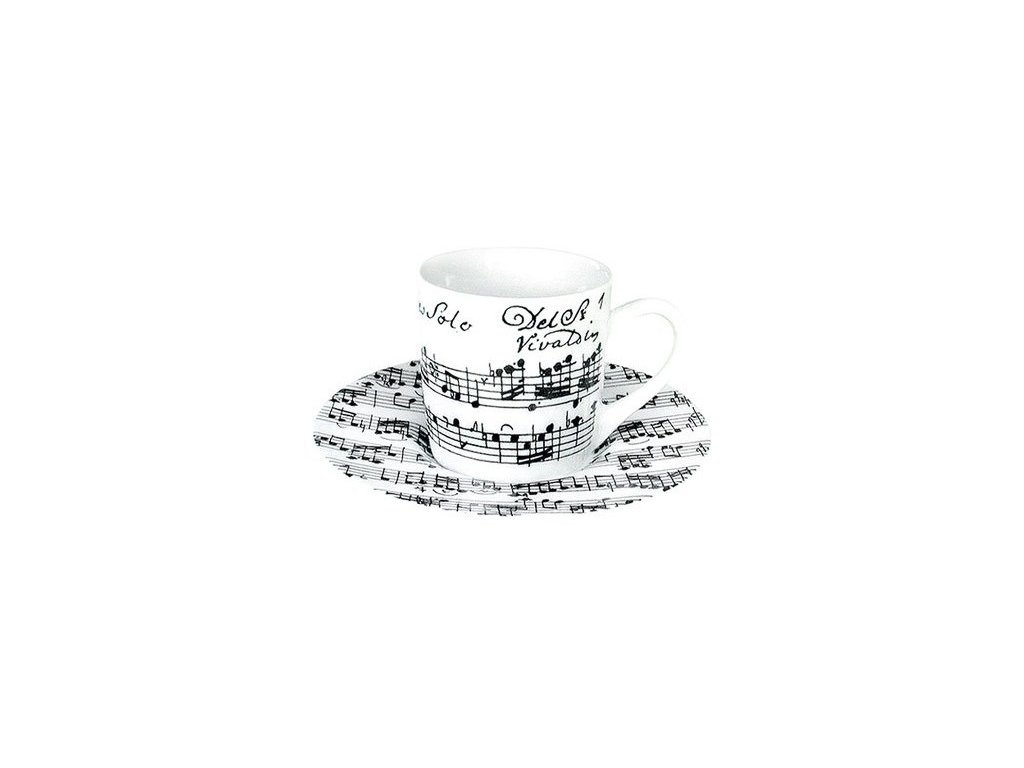 Hrnček s partitúrou Vivaldi – espresso s podšálkou, biely.