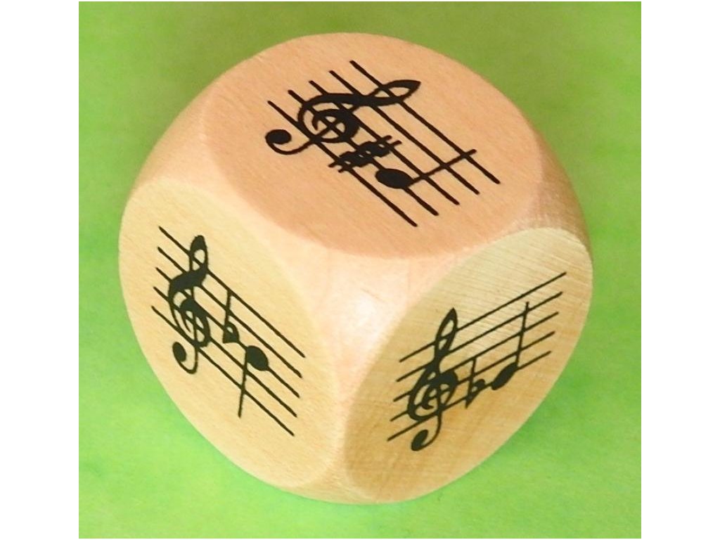 Drevená kocka s notami: cis1, es1, fis1, gis1, as1 b1. Veľkosť 25 mm.
