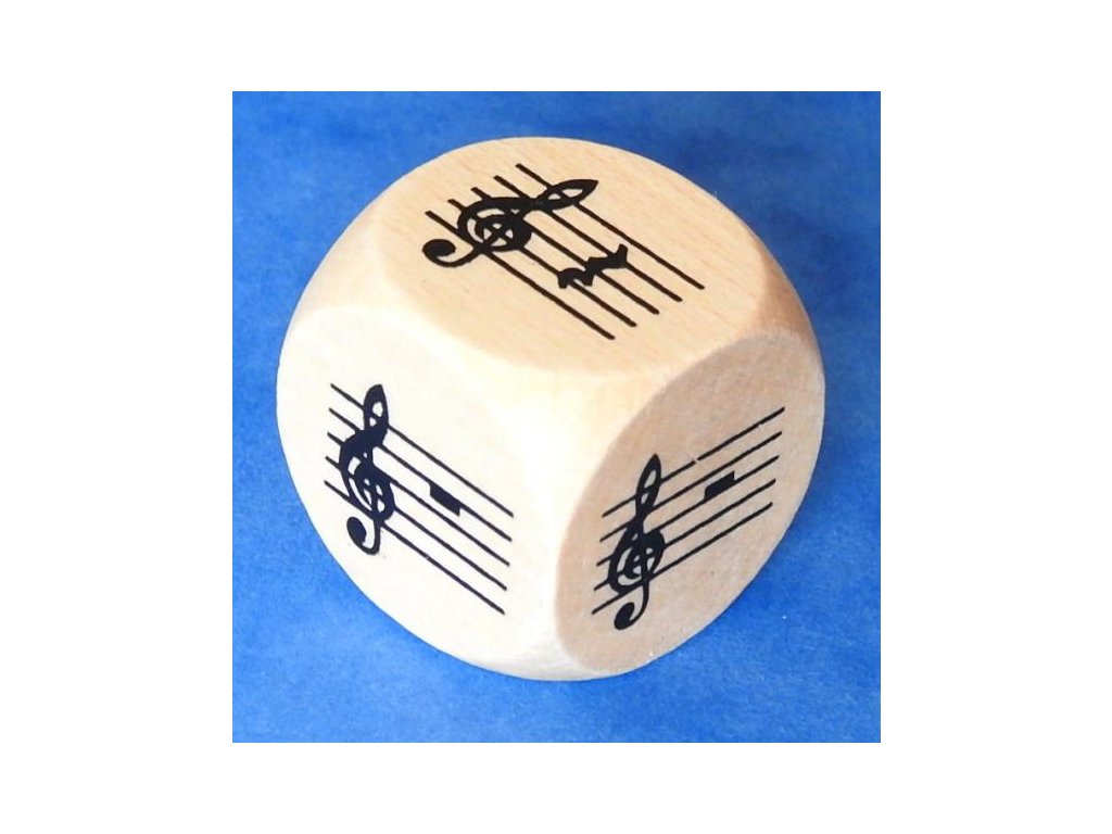 Drevená kocka s pomlčkami: 2x celá, 2x polová, 2x štvrťová. Veľkosť 25 mm.