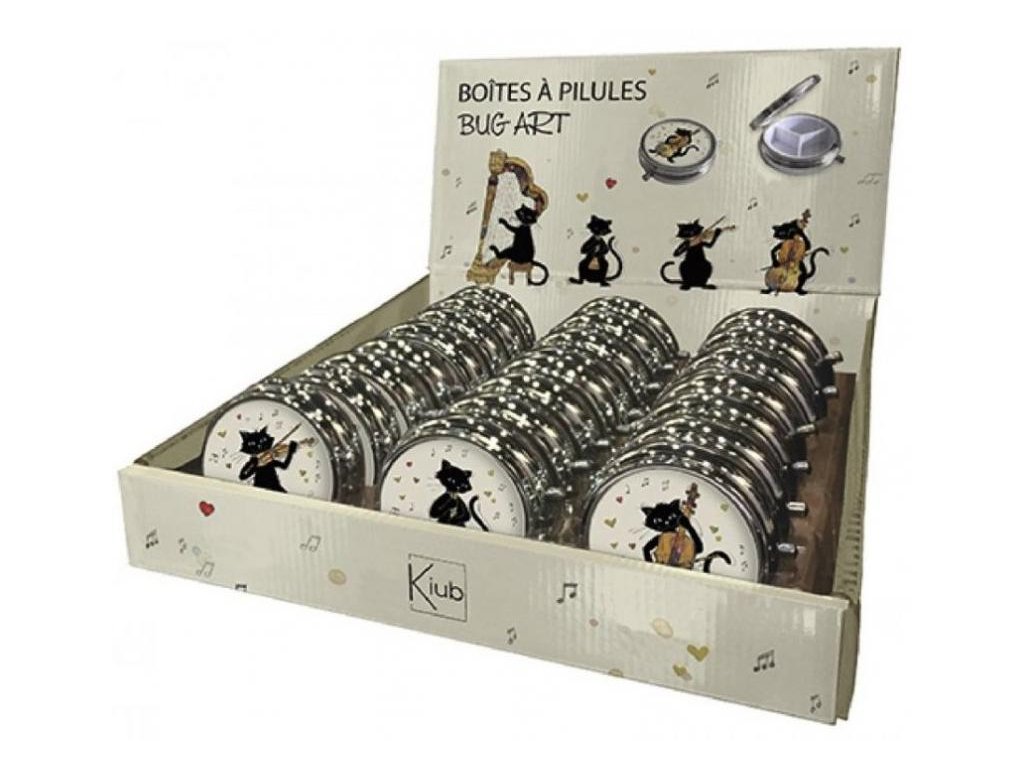 Liekovka MAČKY HUDOBNÍČKY – husle Materiál: kov vo farbe striebra Rozmery: priemer 4,5 cm, výška 1,5 cm