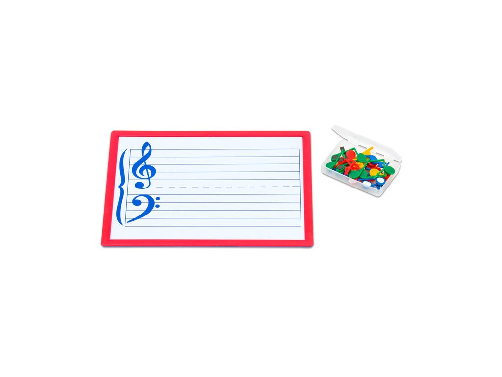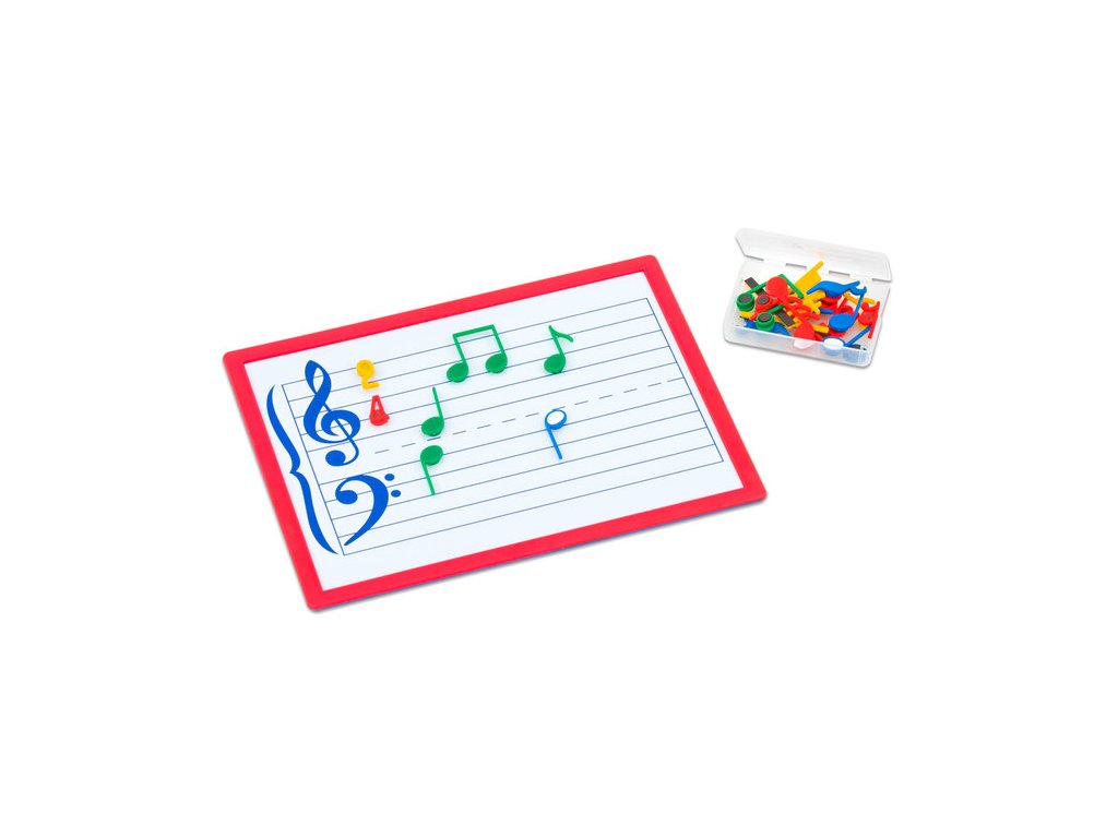 Magnetická notová tabuľka je vhodná pre deti od šiestich rokov. Na prednej strane sú dve notové osnovy, predpísané husľové kľúče a pomocné linky. Súčasť balenia je 33 farebných znakov nôt, pomlk, posuvok a taktových čiar. Popisovateľný povrch - tabuľka je opatrená špeciálnym lakom vhodným na popisovanie fixy na biele tabule. Je možné písať noty podľa vlastného zadania. zadná strana tabuľky je bez notových osnov a je možné ju tiež využiť. Fixy nie sú súčasťou balenia.