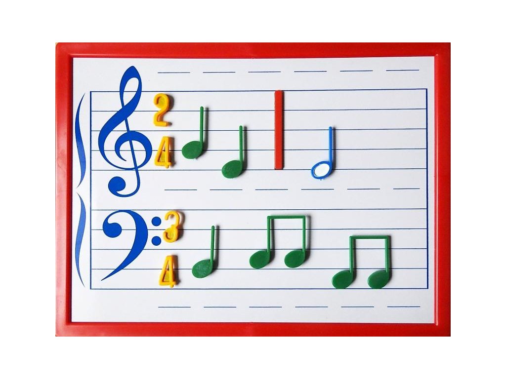 Magnetická notová tabuľa je vhodná na prvé zoznámenie s notami. Deti prirodzene rozvíja hudobné myslenie a kreativitu.