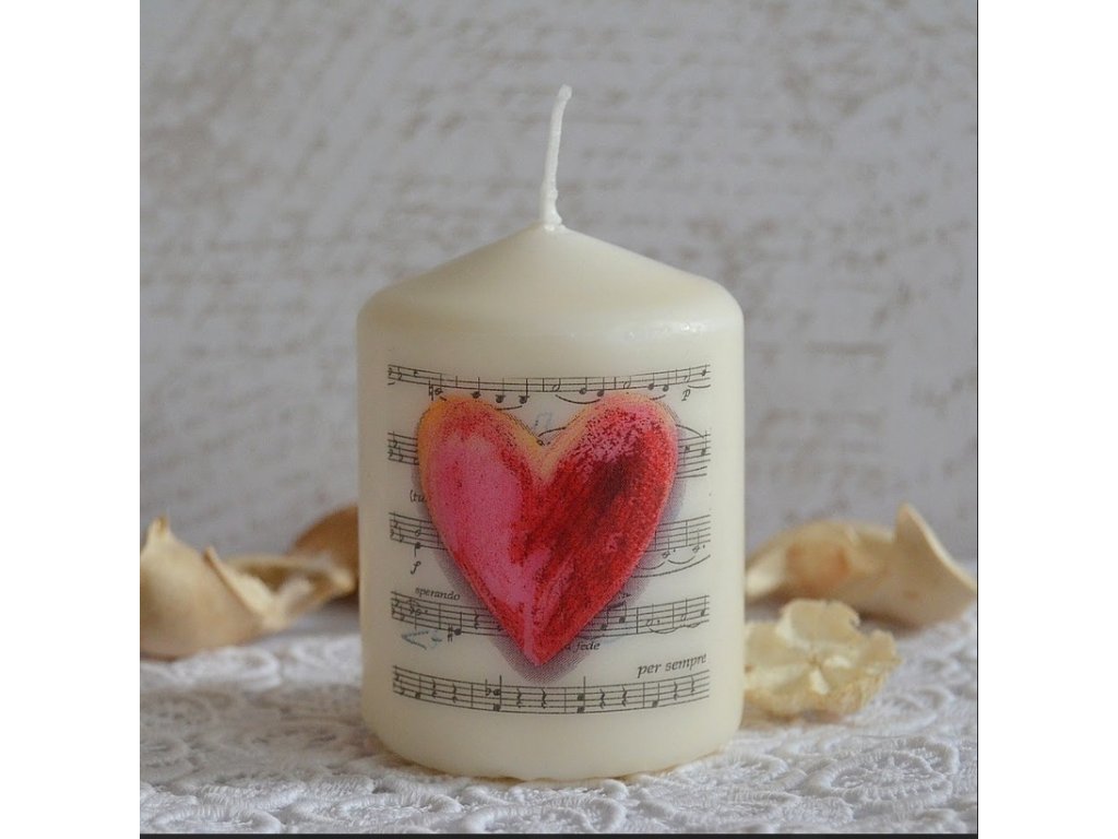 Sviečka je dekorovaná technikou decoupage voskom, nie je použité lepidlo, ani lak. Užite si príjemnú domácu atmosféru s dekoratívnou sviečkou, ktorá ozdobí Váš interiér.