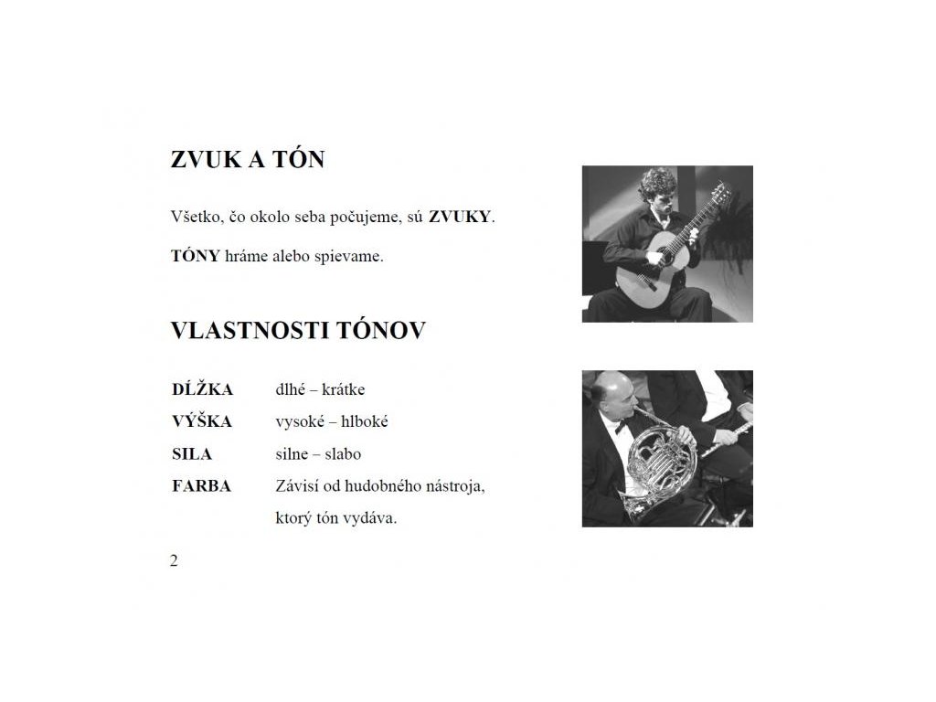 Pracovné zošity sú určené na výuku hudobnej výchovy v ZŠ. Učivo je predkladané zrozumiteľnou a deťom prístupnou formou. Zošity obsahujú základné hudobné poznatky, ktoré sú následne precvičované v konkrétnej úlohe. Jednotlivé kapitoly sú prehľadne usporiadané a majú na seba nadväznosť. Pracovné zošity sa neomedzujú iba na písanie nôt, ale sú tu tiež zastúpené poznatky o hudobných nástrojoch a skladateľoch. Dôležitým prvkom sú hudobné doplňovačky a zajímavosti. Zošity doplňujú fotografie hudobných nástrojov a portréty skladateľov.