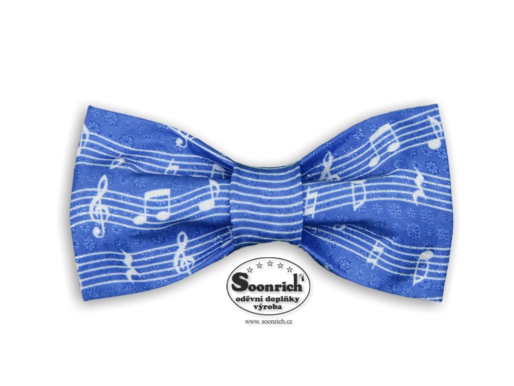 Hudobný motýlik v modrom prevedení s bielou potlačou.