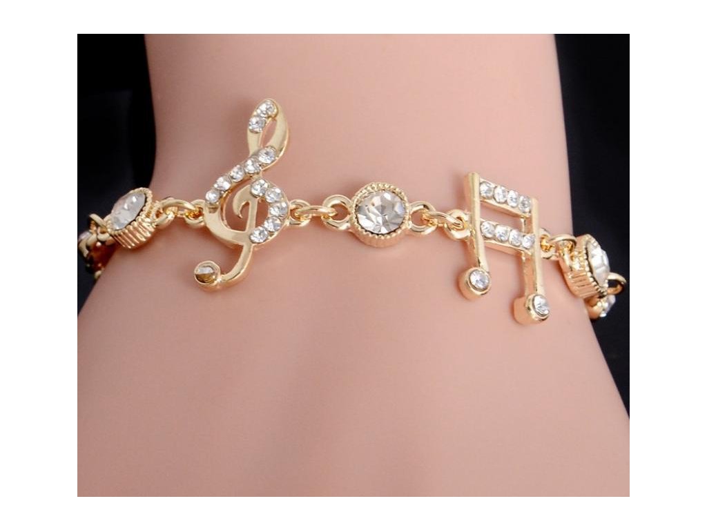 Elegantný náramok na ruku s notami a husľovými kľúčmi.