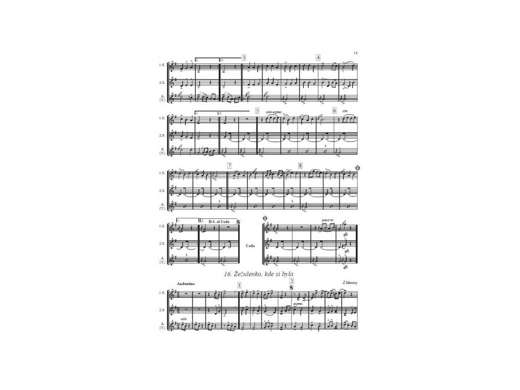 25 úprav ľudových a národných piesní pre trio zobcových flautov SSA (T). Partitúra + party.