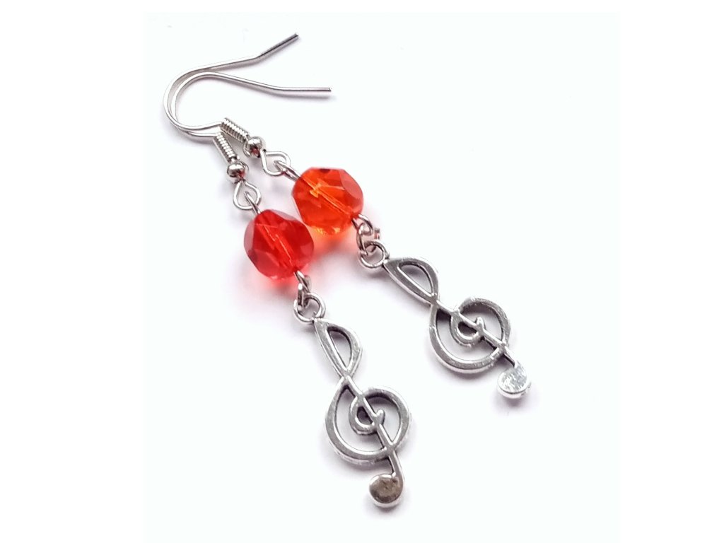 Náušnice s husľovým kľúčom a skleneným korálikom.