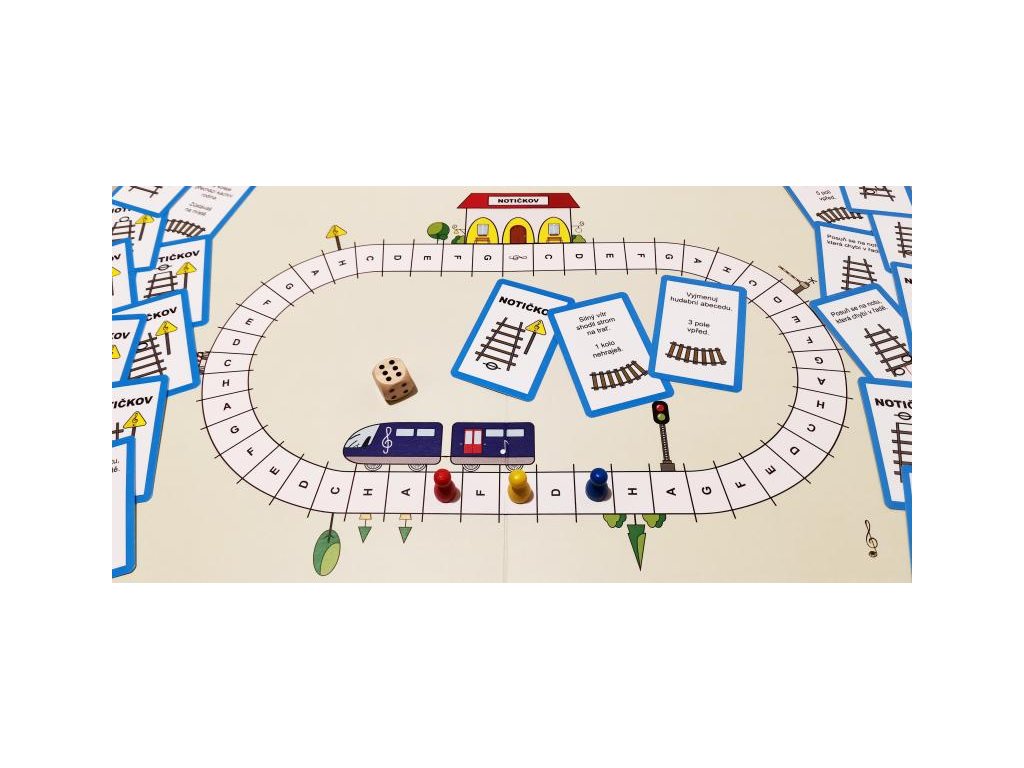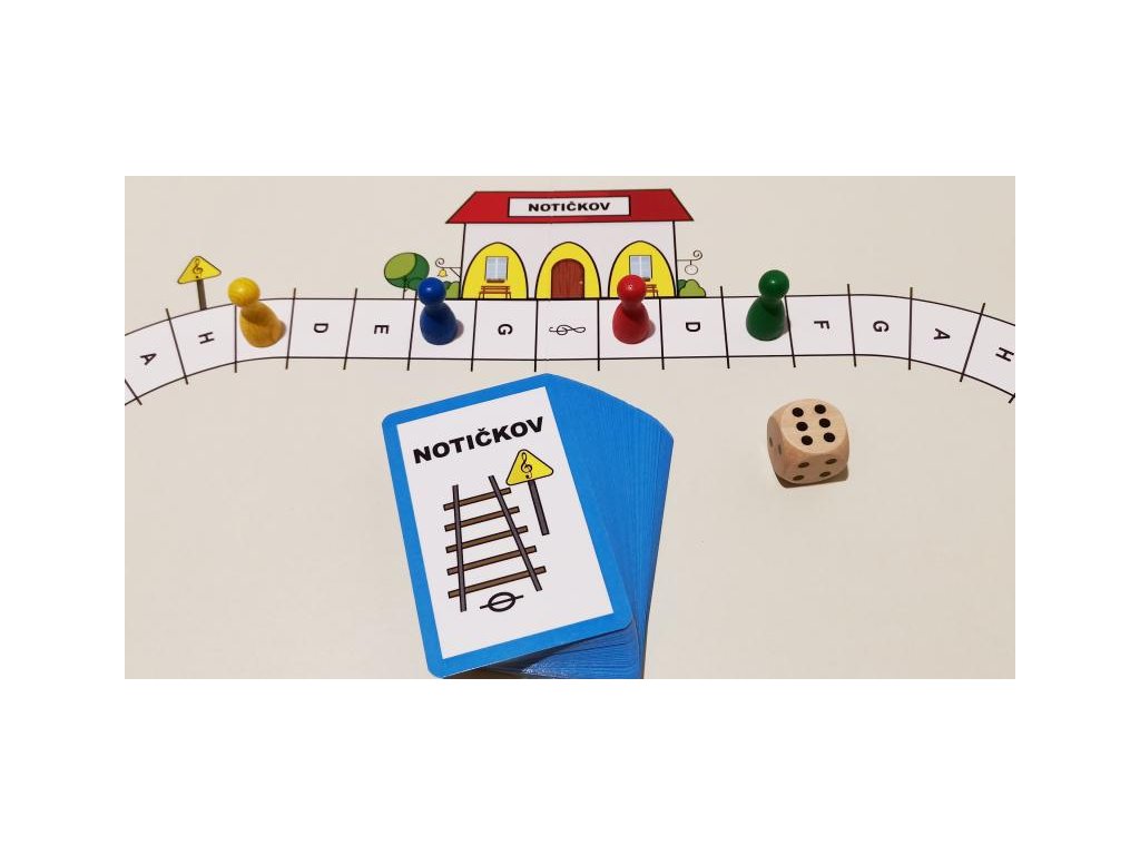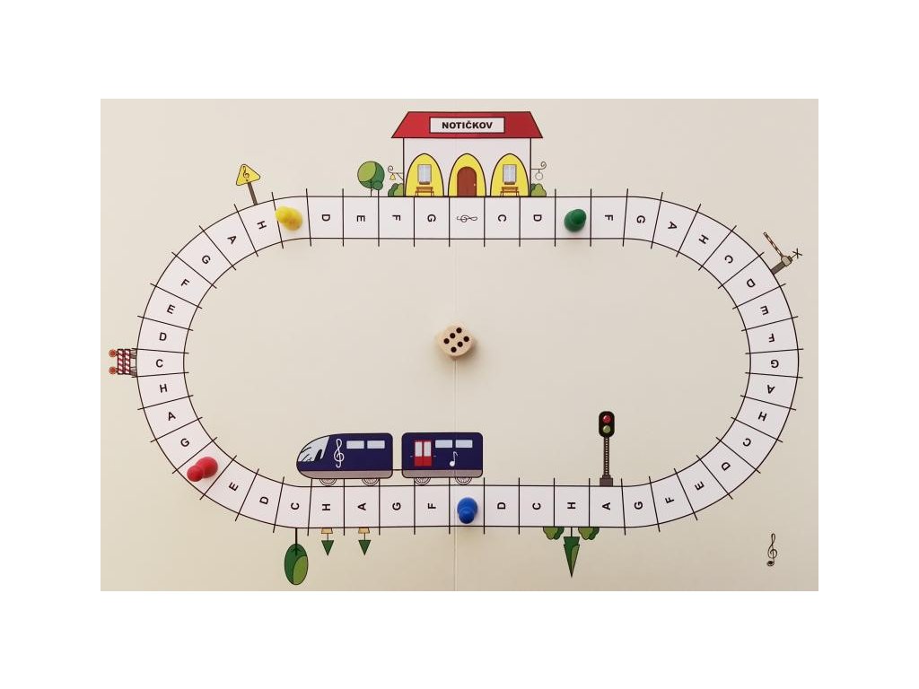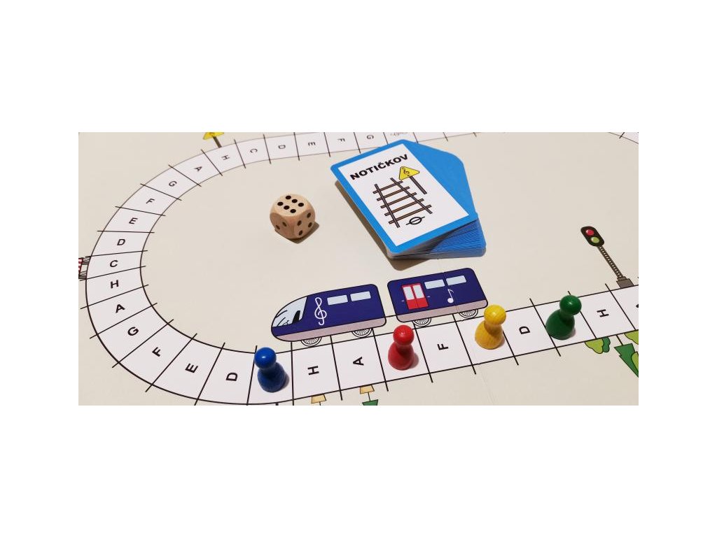 Počuli ste niekedy o staniciach v Stupničkovej a Notičkovej? Zrejme nie, pretože tieto stanice rozprávajú vlaky na hudobné cesty. Poďme si predstaviť Notičkov, je to malá stanica, z ktorej vedie okružná jazda plná notového dobrodružstva. Po ceste stretnete noty z husľového kľúča, určite si ich náležite precvičíte, ale tiež sa pobavíte a zasúťažíte si. Rozhodne nemusí vždy vyhrať ten najväčší znalec nôt, ale k hre potrebujete aj správnu dávku šťastíčka. Kto je pripravený, môže nastúpiť. Vlak už na vás v Notičkove čaká a ide sa na výlet...