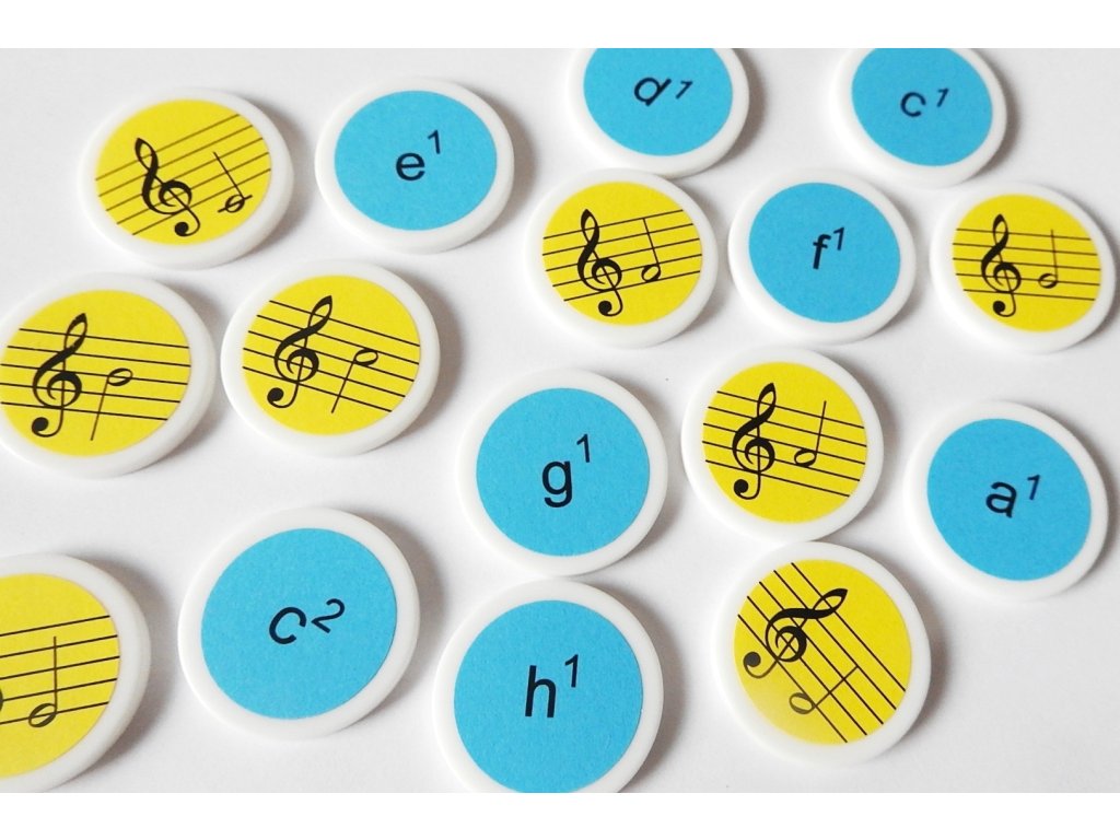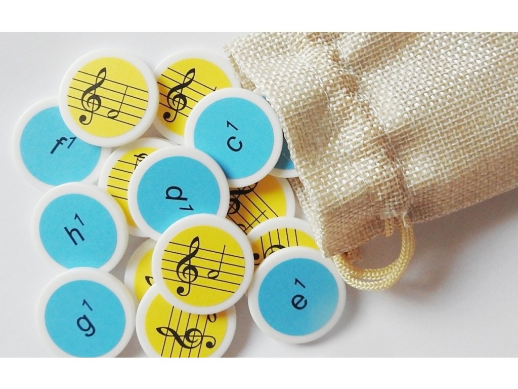 Praktická pomôcka na zapamätanie nôt v husľovom kľúči. Balenie obsahuje celkom 16 koliesok s notami c1-c2 a ich názvami. Balené v zaťahovacom látkovom vrecúšku. Priemer kolieska: 3 cm.