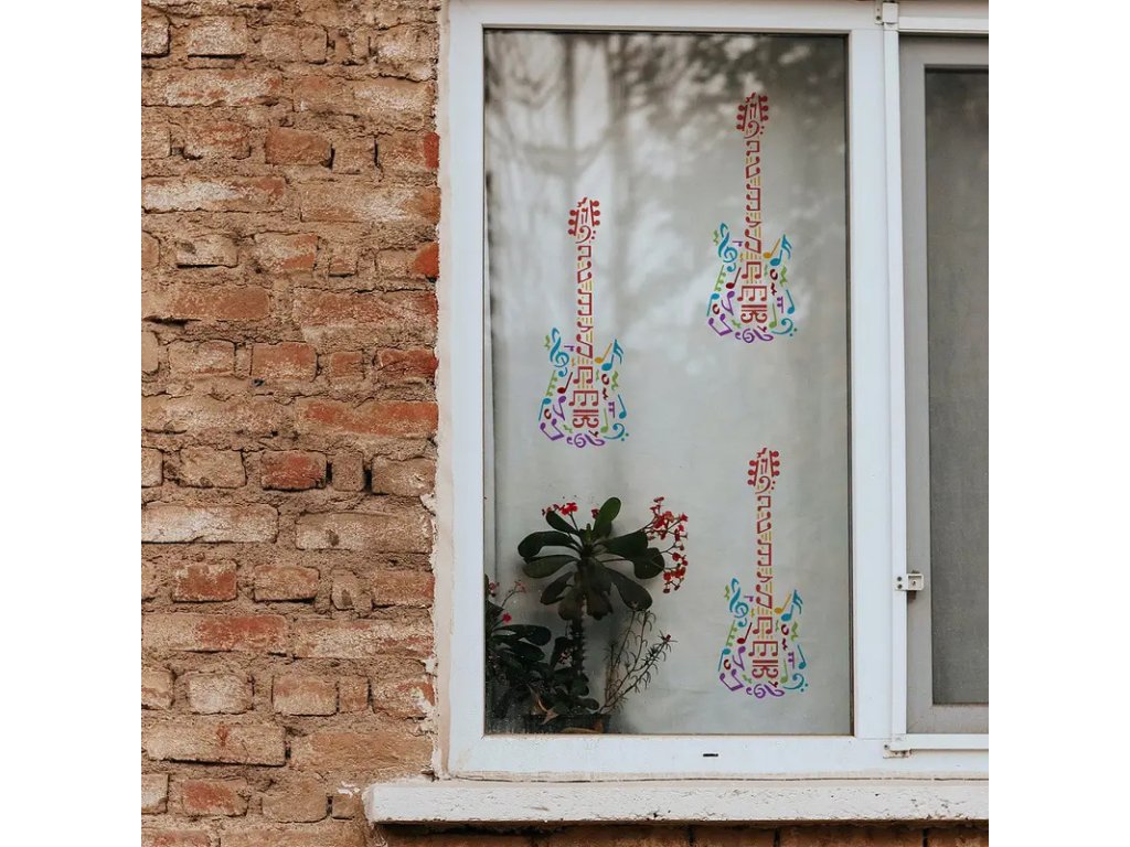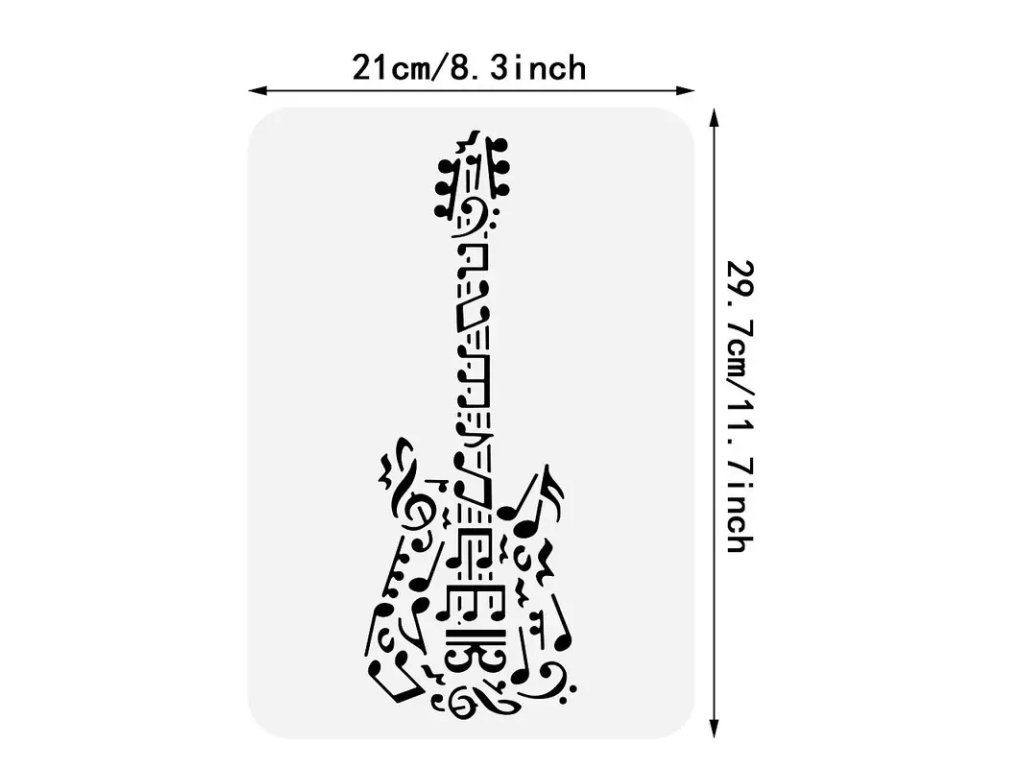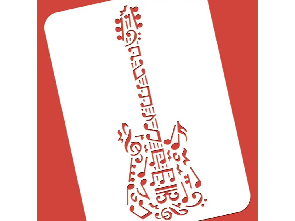 Opakovane použiteľná plastová šablóna gitary na ručnú výrobu pre domácu dekoráciu a novoročné darčeky.