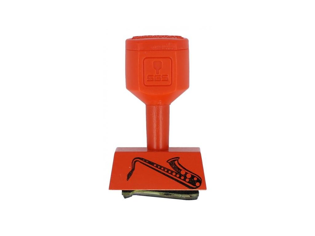 Pečiatka s motívom saxofónu, veľkosť 3 cm.