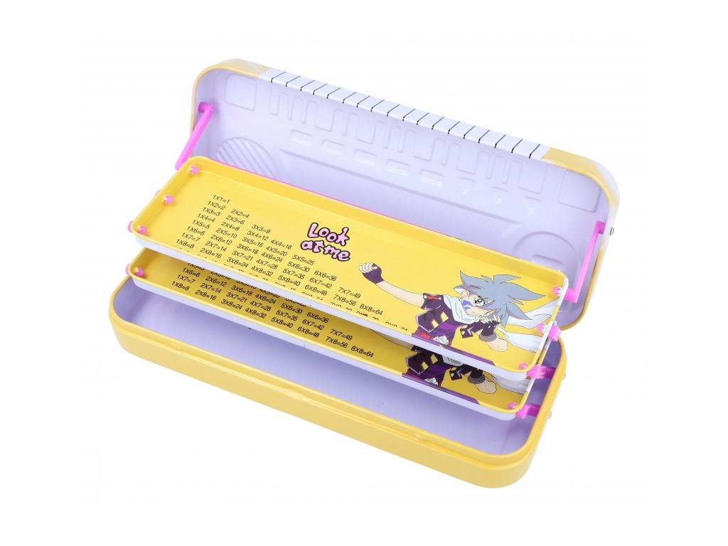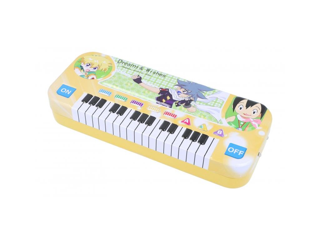 Plechové puzdro s motívom klaviatúry. Rozmery 21,5 x 8,5 x 3,5 cm