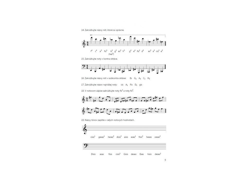 Cieľom pracovného zošita je ponúknuť žiakom a študentom základný prehľad hudobno-teoretických poznatkov v podobe konkrétnech príkladov. Jednotlivé úlohy na noty, stupnice, akordy, intervaly a ďalšie hudobno-teoretické pojmy sú v jednotlivých celkoch zoradené podľa náročnosti. Súčasťou zošita je aj 54 rytmických cvičení zoradených podľa náročnosti. Zošit ponúka širokú možnosť uplatnenia. Je vhodný pre žiakov ZUŠ a študentov, ktorí sa pripravujú na konzervatórium. Kľúč s riešením jednotlivých úloh ponúka možnosť vlastnej kontroly aj bez účasti pedagóga. Riešenie je uvedené v notových ukážkach na konci zošita.