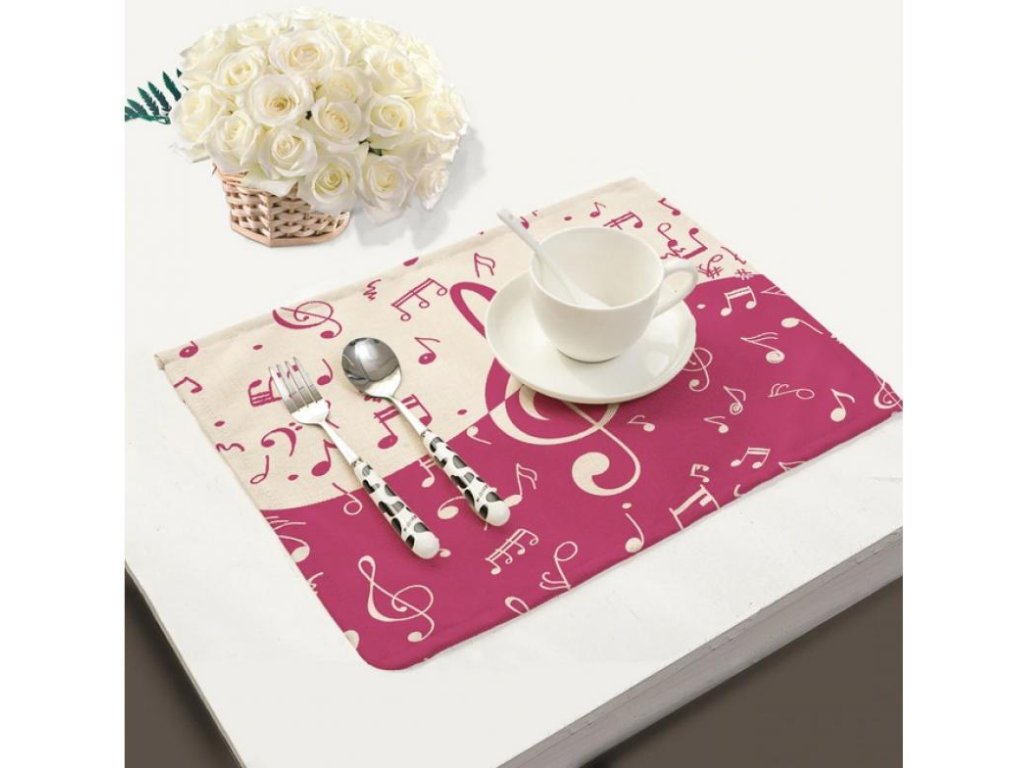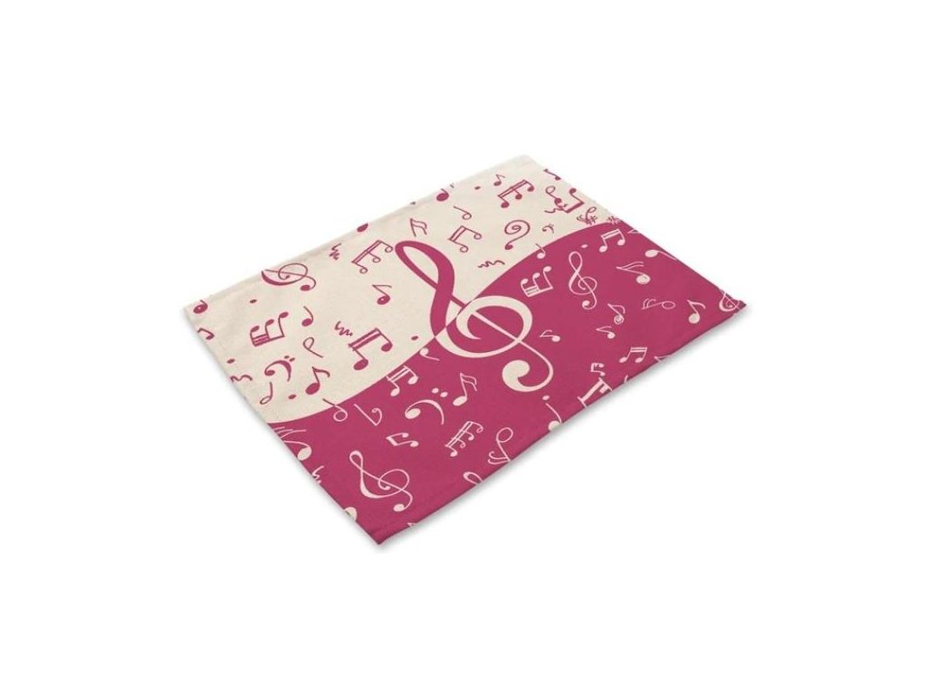 Prestieranie v ružovo-béžovej farbe s hudobným motívom. Prestieranie sa dodáva v zloženom stave a je potrebné ho vyžehliť.