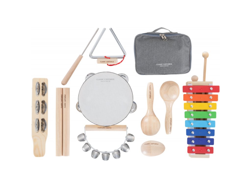 Táto sada bicích nástrojov výrobcu Classic Cantabile pre deti zahŕňa široký výber hudobných nástrojov. Či už je to v škôlke, v hudobnej výchove alebo jednoducho doma. Hranie s rytmickými nástrojmi nielen podporuje rozvoj detí, ale prináša aj veľa zábavy.