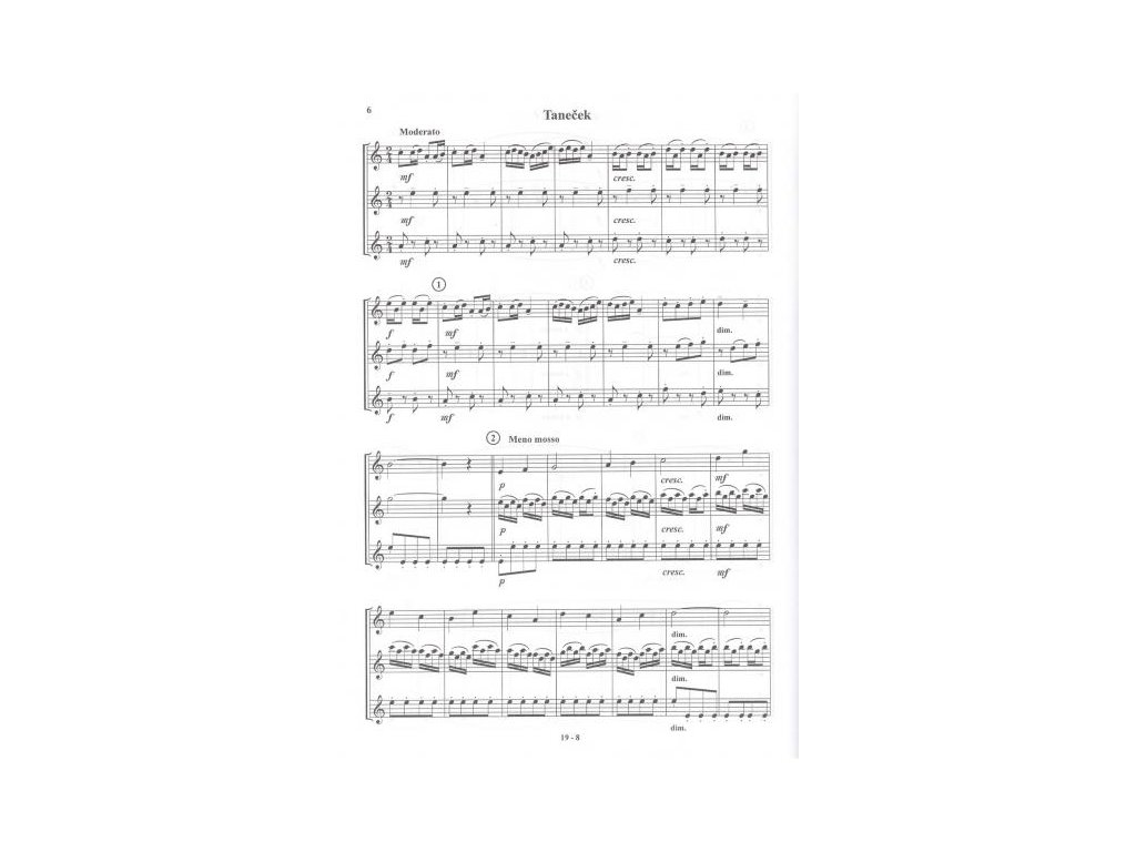 Tento titul obsahuje 28 skladieb rôznych hudobných žánrov: klasické prednesové skladby, ľudové piesne a vianočné koledy v úprave pre tri zobcové flauty. Autori: Miloslav Klement, Miroslav Pelikán a Ján Šebek. Formát A4, 31 stran.