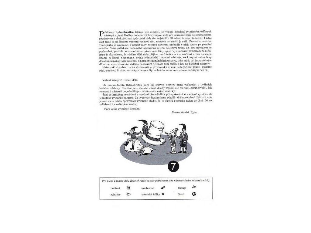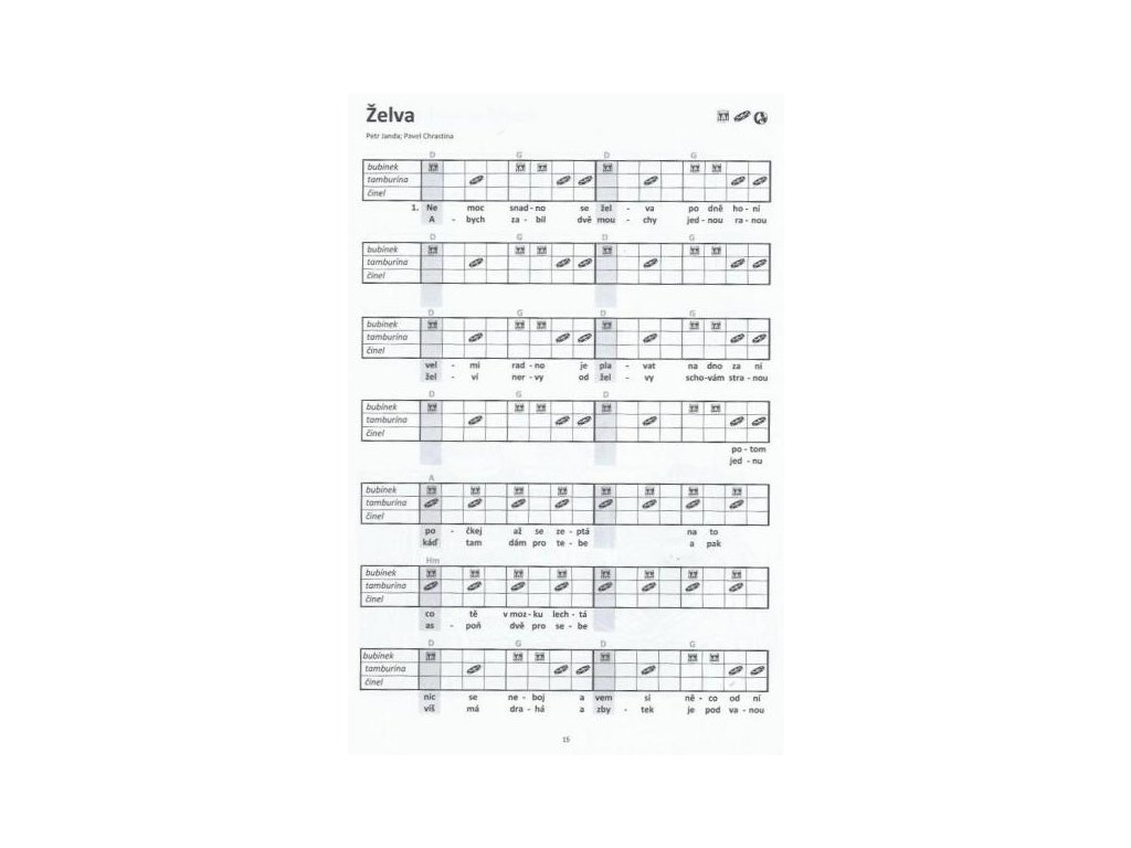 Tento zošit obsahuje rozpis známych populárnych piesní pre bubienok, tamburínu a ďalšie rytmické orffove nástroje. Pomáha populárnou formou viesť žiakov k spievaniu ak citu pre rytmus. Publikácia je bez notového zápisu.