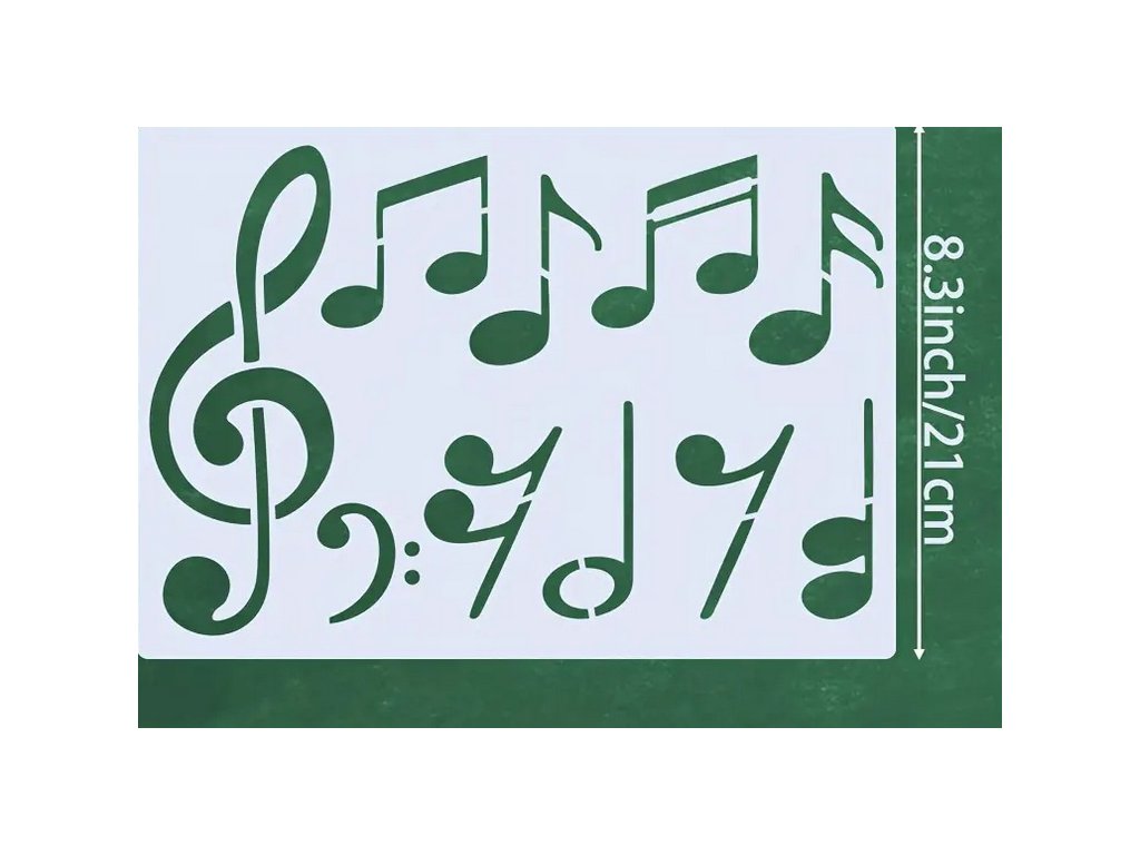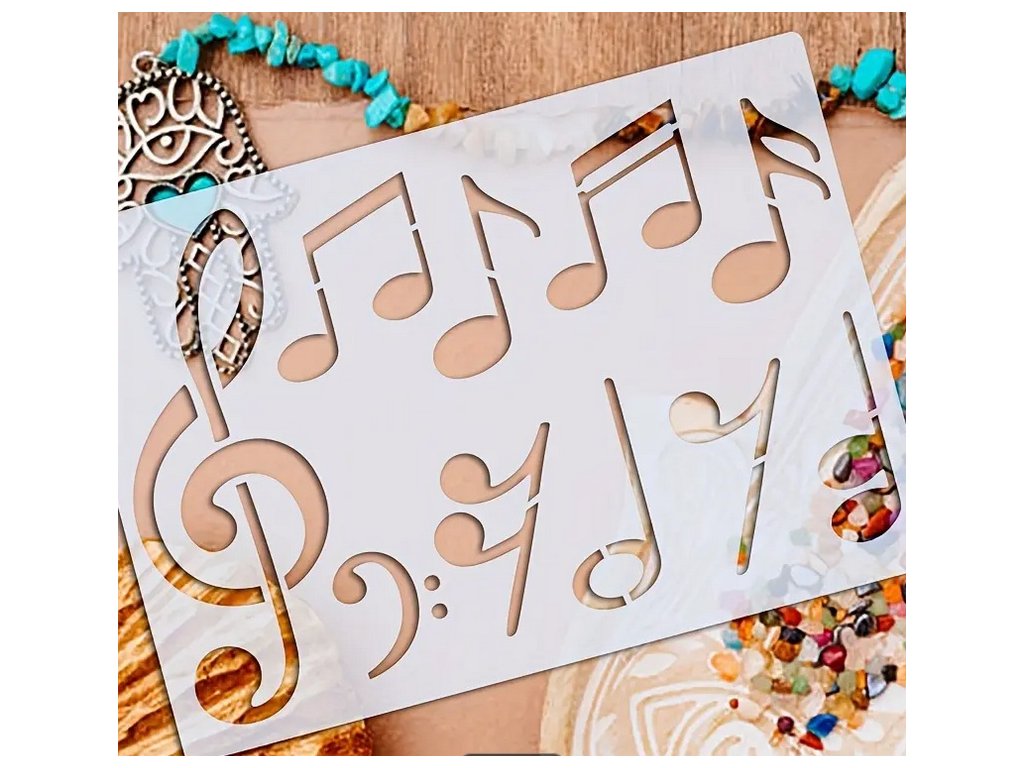 Šablóna na obkresľovanie nôt a hudobných symbolov formátu A4.