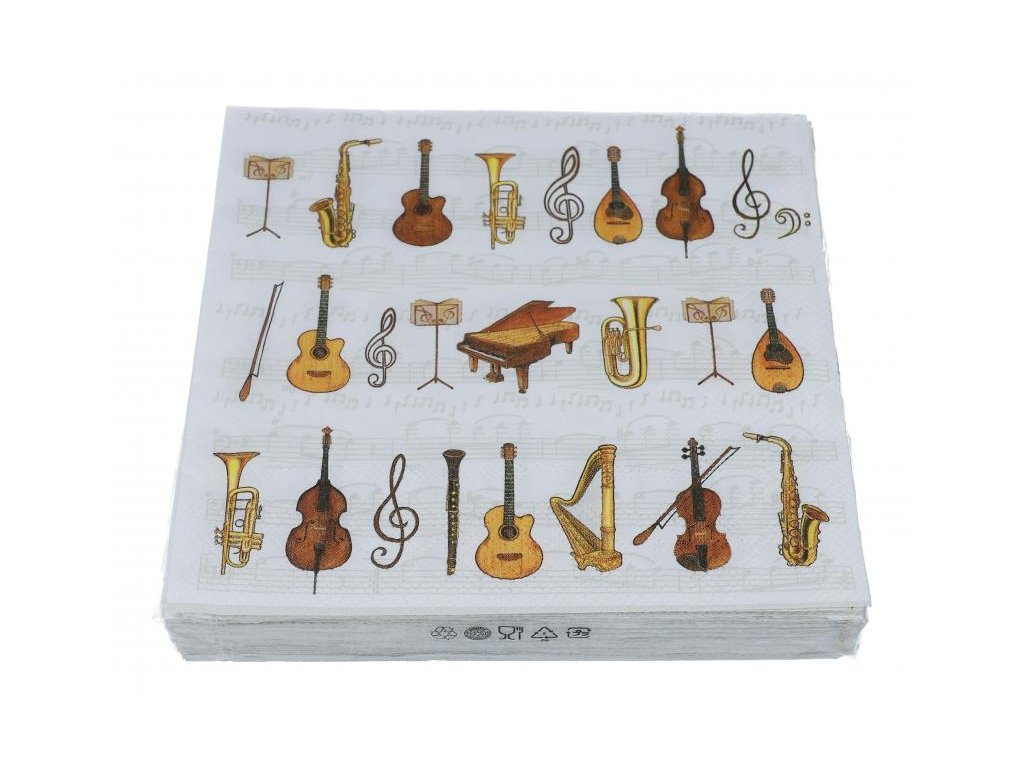 Papierové obrúsky s 3 vrstvami – s hudobným motívom Rozmery: 33 x 33 cm Balenie obsahuje 20 ks