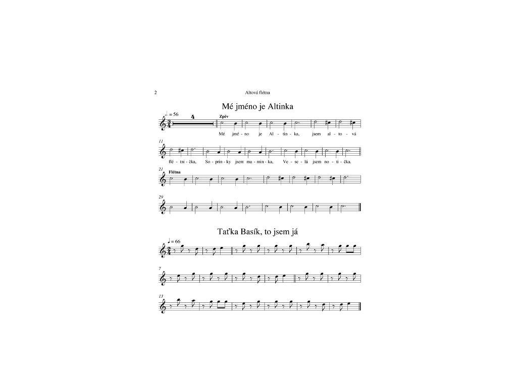 Notácia pesničiek z knihy a CD O štyroch flautičkách alebo Ako Soprinka našla stratenú pesničku: