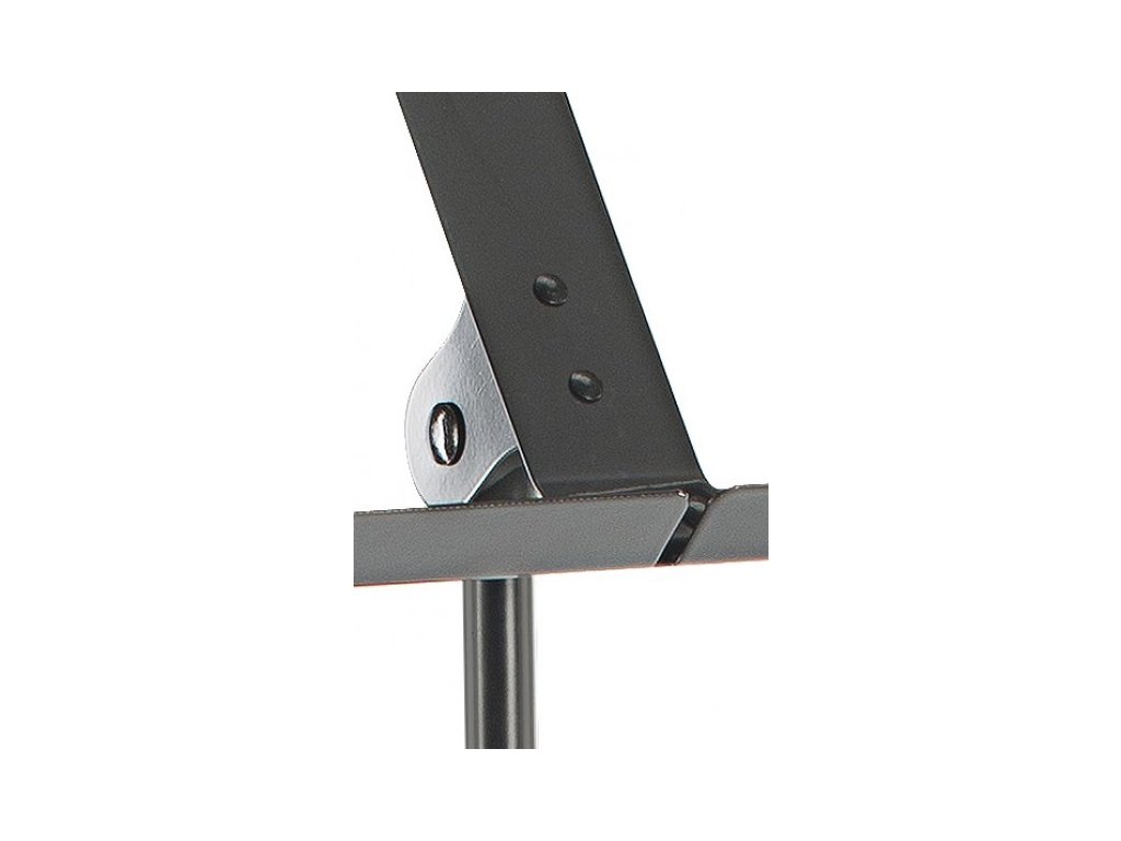 Pevná kovová konštrukcia s nylonovými spojovacími časťami. Možno ľahko zložiť pre ľahkú prepravu. Stabilná základňa. Jednoduché nastavenie výšky a uhla. Odolné práškové lakovanie proti poškriabaniu. Ergonomicky tvarované rukoväte a kolíky. Pružinové držiaky stránok. Vrátane prenosného puzdra. Výška desky: 52 až 123 cm. Priemer rúrky, 3 časti: 12 mm, 16 mm, 19 mm. Priemer trubky nohy: 16 mm. Hmotnosť: 1 kg.