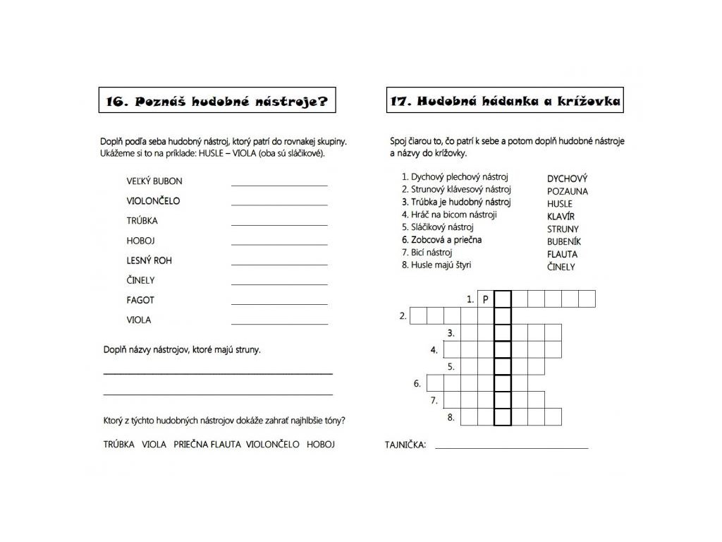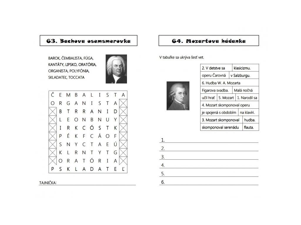 Obľúbený a veľmi žiadaný titul Súbor hudobných doplňovačiek obsahuje krížovky, testy, osemsmerovky a ďalšie zábavné úlohy, v ktorých deti precvičujú základné hudobné pojmy, znalosti o skladateľoch a nástrojoch. Na konci zošita sú uvedené správne odpovede a riešenia.