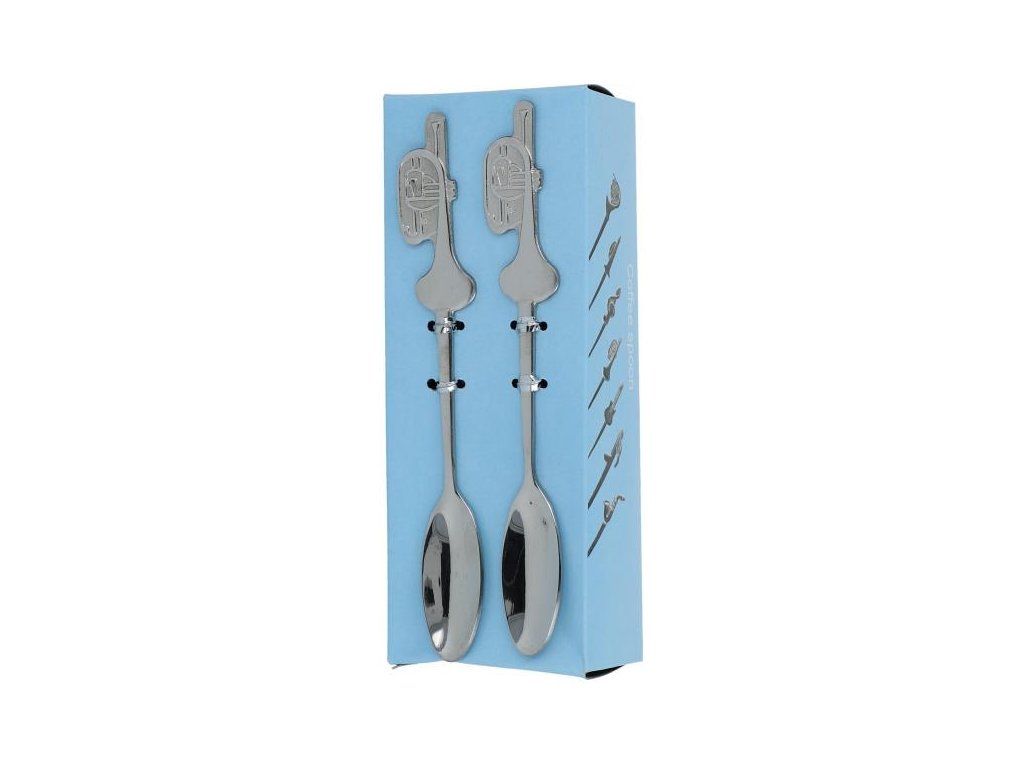 Súprava dvoch malých lyžičiek s motívom trúbky (krídlovky) v darčekovom balení.