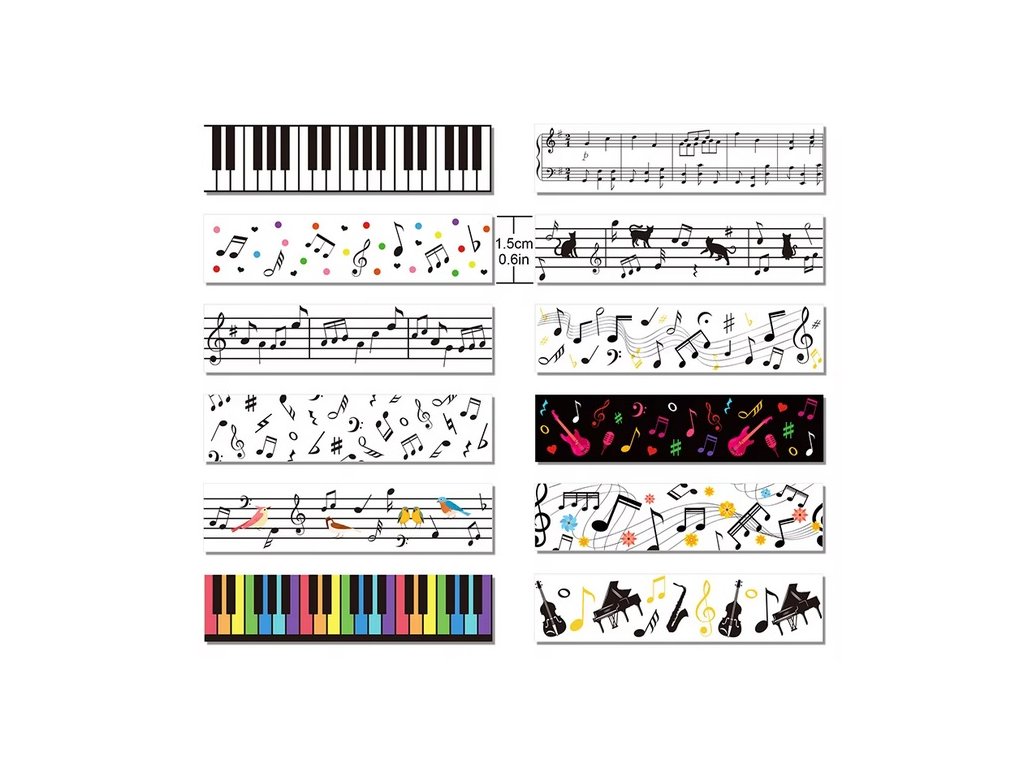 Súprava obsahuje dvanásť lepiacich pások s hudobnými motívmi.