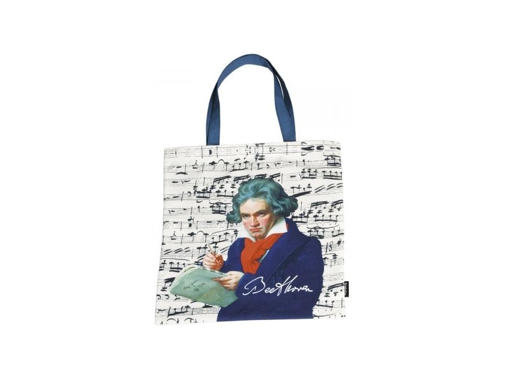 Nákupná taška z polyesteru, štruktúrou pripomína bavlnenú látku, ľahko sa dá poskladať. Ludwig van Beethoven na portréte od nemeckého maliara Stielera. - 38*40 cm, uši na výšku 20 cm - 100% polyester - ručné pranie