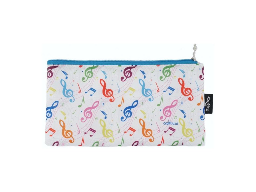 Praktická taštička s motívom husľových kľúčov. Dĺžka 24 cm, výška 12,5 cm.