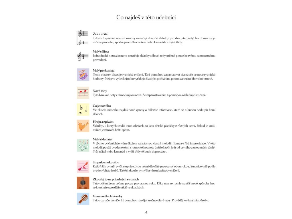 Kytarová prvá trieda, 1. diel dvojdielnej učebnice, je určená pedagógom a ich žiakom v prvých ročníkoch ZUŠ.