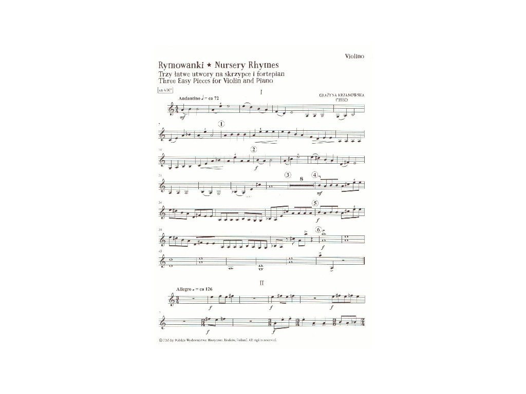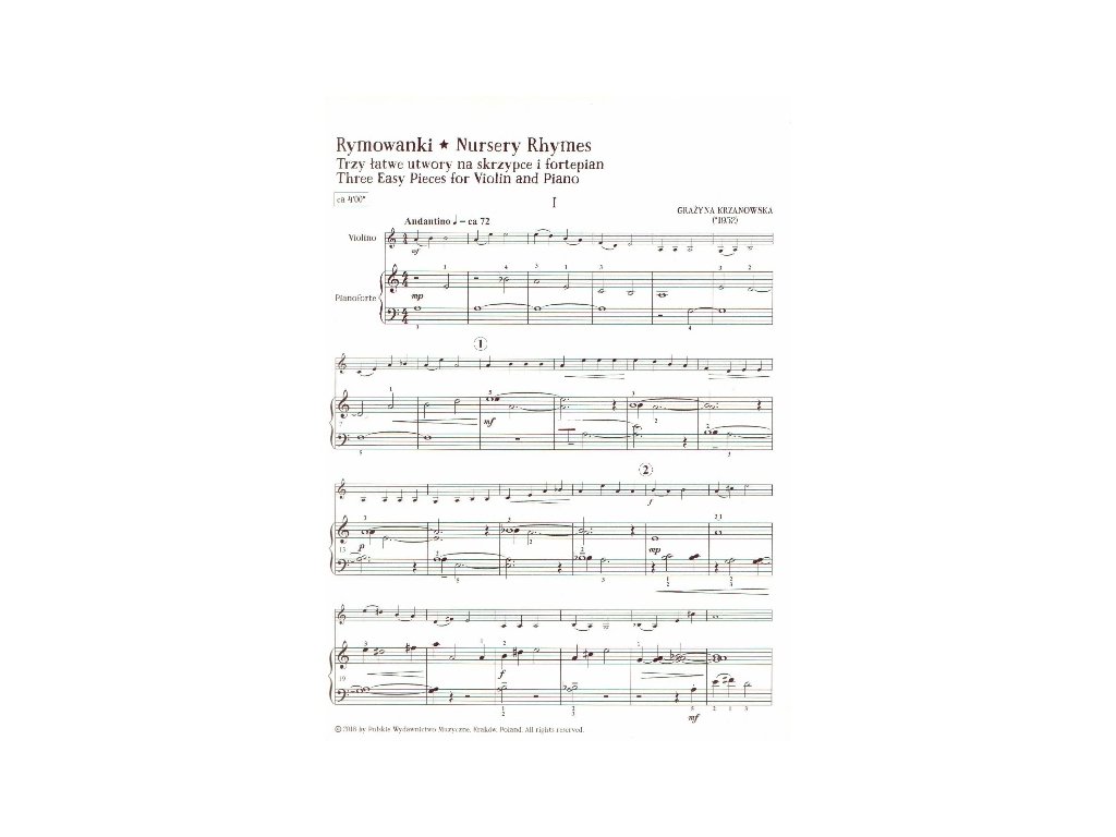 Říkanky od Grażyny Krzanowskej obsahujú tri jednoduché skladby v úprave pre husle a klavír. Skladby uvádzajú mladých huslistov a klaviristov do sveta zaujímavého hudobného rozprávania